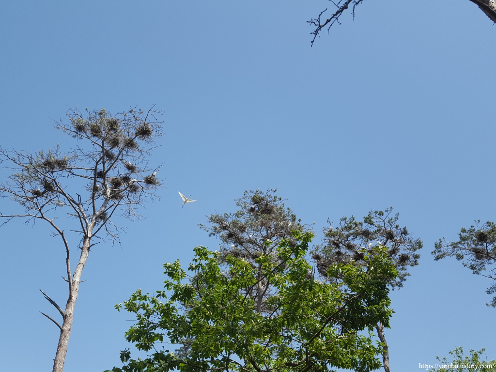 상리마을을 빠져나가자 마을 앞 숲에서 새소리가 들려온다. 이곳은 백로와 왜가리 같은 여름 철새들이 둥지를 틀고 있는 곳이다.