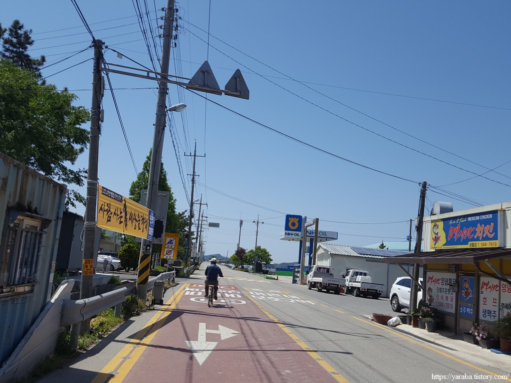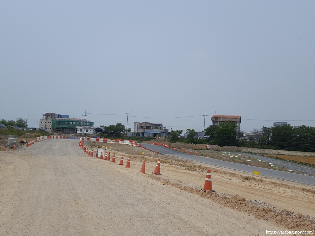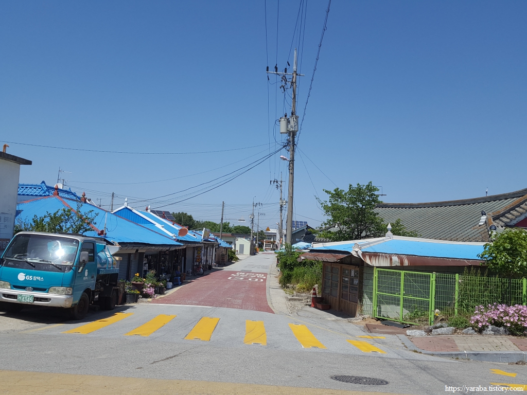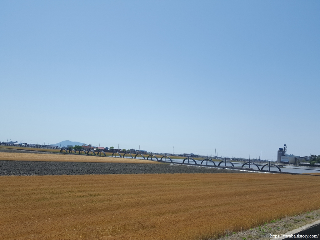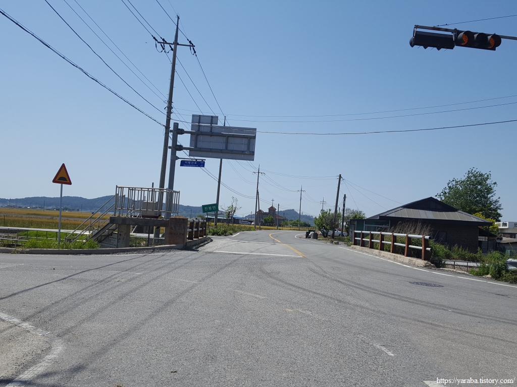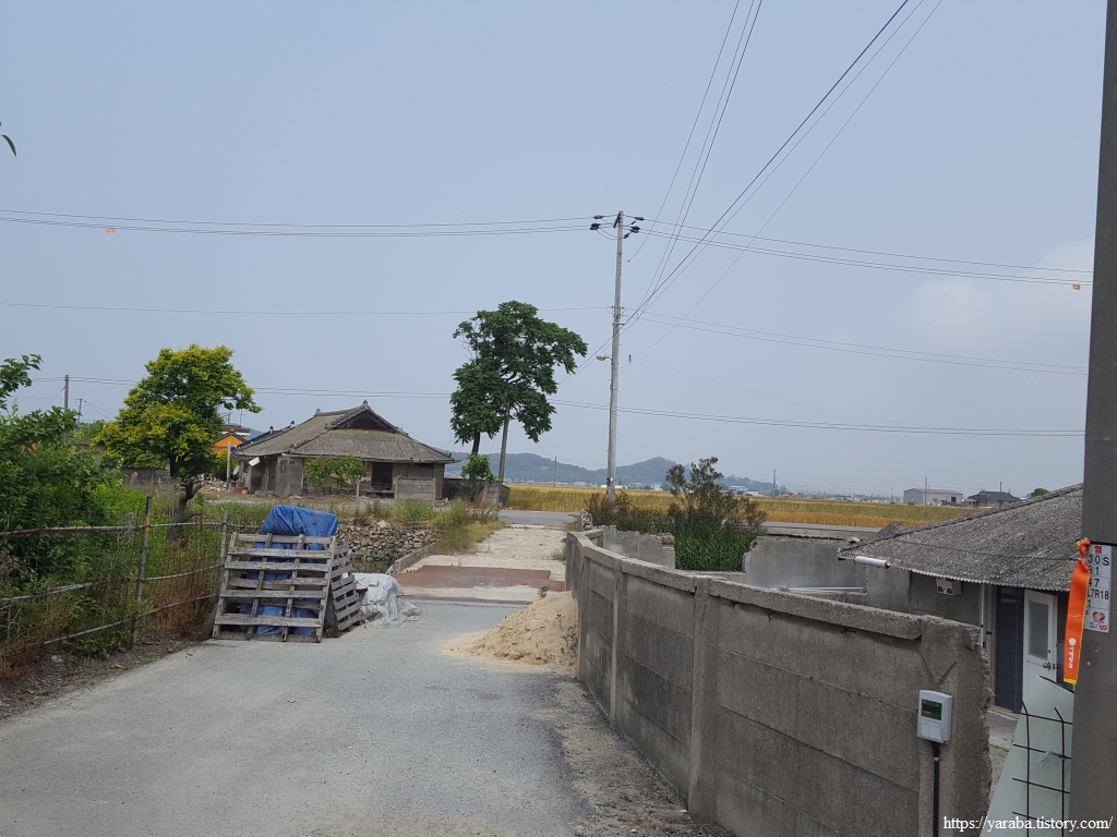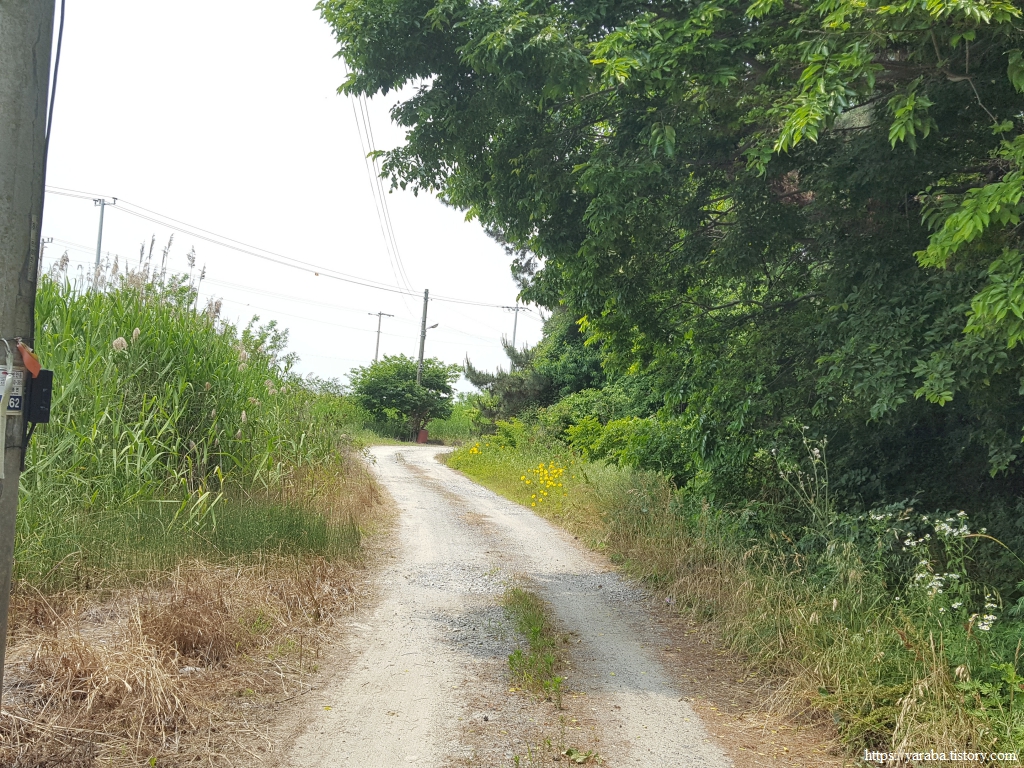약간의 배려도 없이 쏟아지는 뙤약볕 아래에서 광활로를 걸어간다. 원래의 서해랑길로 갔다면 시야에 들어오는 것은 온통 들판뿐이었을 텐데 광활로 도로를 걸으니 그나마 이따금씩 마을을 만나면서 이곳에 사는 사람들의 생활상을 살짝 볼 수 있어 좋았다. 진흥마을을 지나간다.