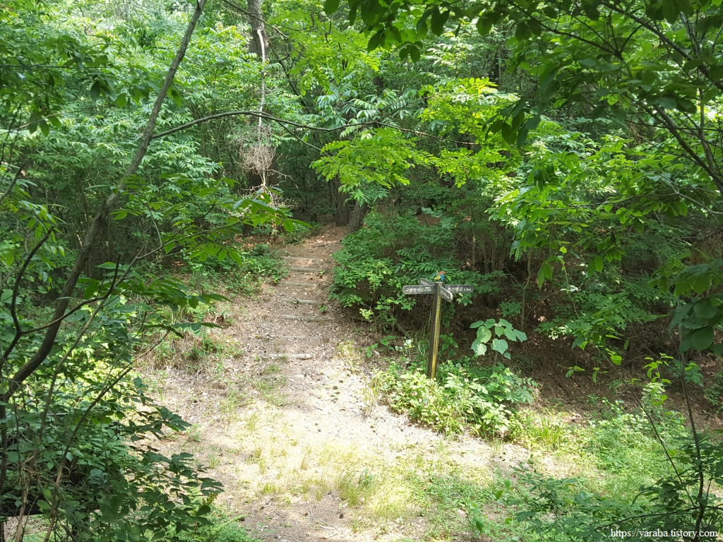 거전마을에서 봉화산 중간 능선으로 올라오는 갈림길을 지나 숲 속 능선 길을 이어간다.
