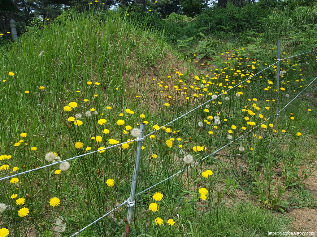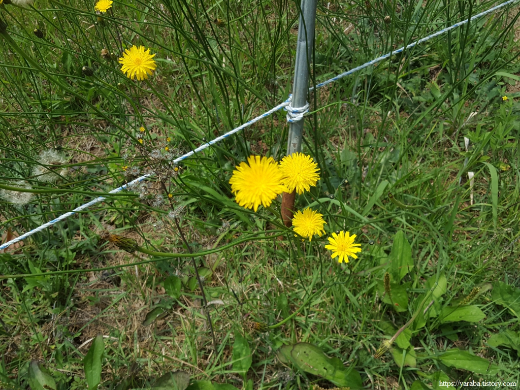 능선길에 서양금혼초가 장관이다. 꽃이 민들레를 닮기도 했는데, 아니나 다를까 개민들레라는 별명도 있다. 꽃대가 긴 특성이 있는 여러해살이 풀로 외래종이고 생태 교란 식물로 지정되어 있다.