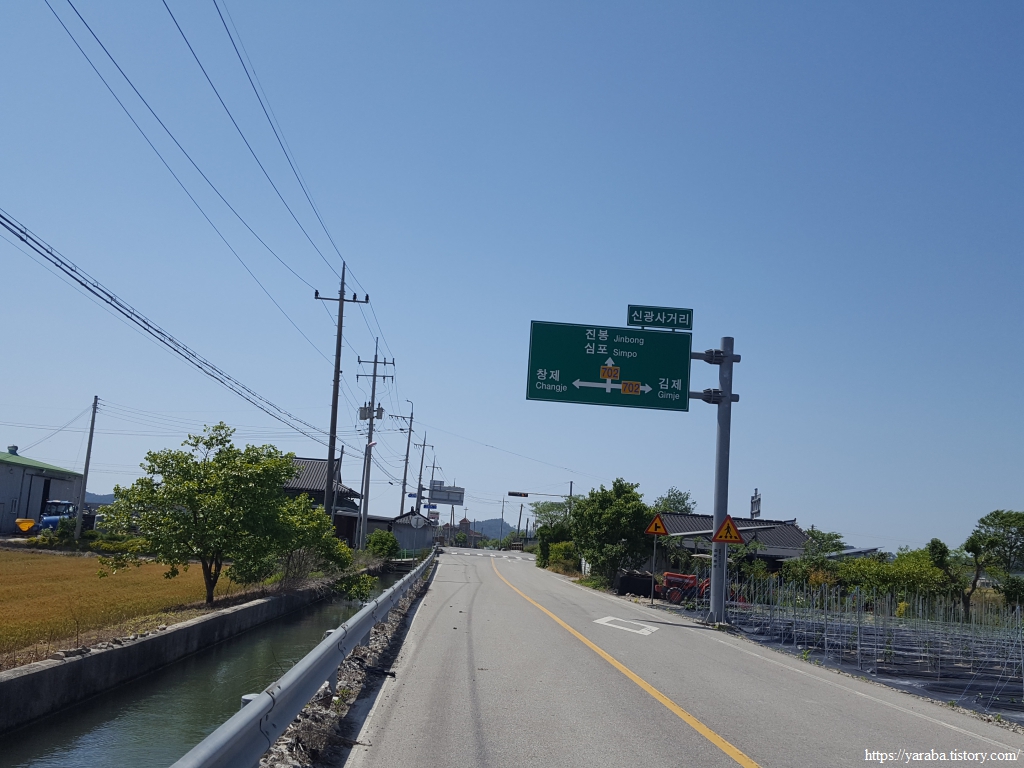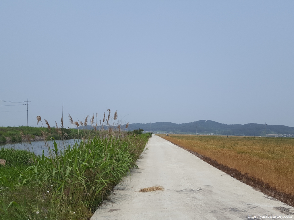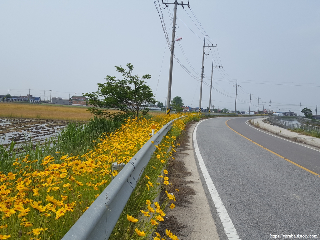 지난 여행 이후 일주일이 흘렀다. 어느덧 5월 말이다. 봄도 끝나가고 초여름이라 해도 과언이 아니다. 김제역 앞에서 15번 버스를 타고 신광마을로 돌아와서 여정을 이어간다. 남쪽으로 내려가 원래의 경로와 합류하는 길, 길가에는 노란 금계국이 화사하게 나그네를 반겨준다.