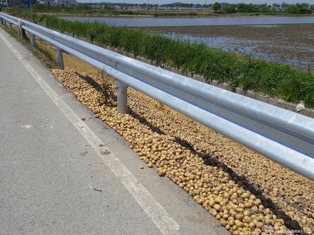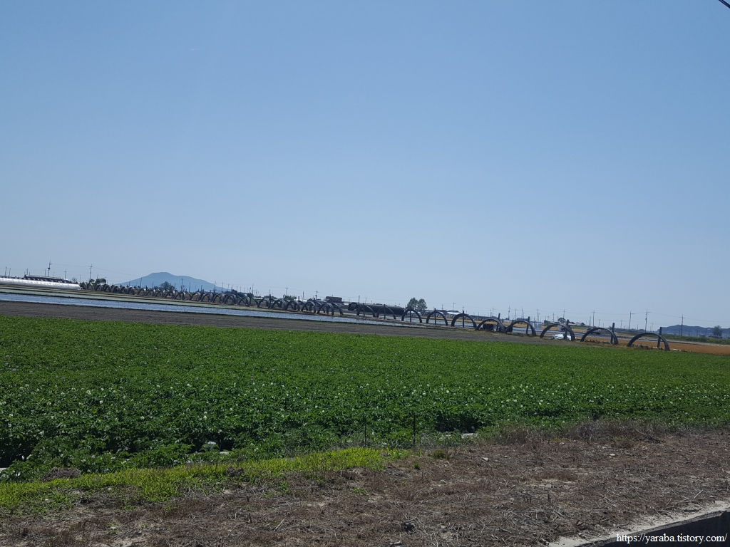 논 양쪽에 쌓아 놓았던 하우스용 파이프들의 정체가 감자 재배용이었다는 증거는 길을 이어갈수록 실체로 만나게 된다. 감자선별장도 있었고, 한쪽에서는 수확을 끝낸 감자밭의 비닐을 걷고 파이프를 해체하고 있었다. 이곳에서는 1970년대 말부터 감자와 벼를 이모작으로 재배하고 있다고 한다. 겨울을 나는 감자 재배용 비닐하우스가 7 천동이 넘는다고 하니 정말로 엄청난 규모를 자랑한다.