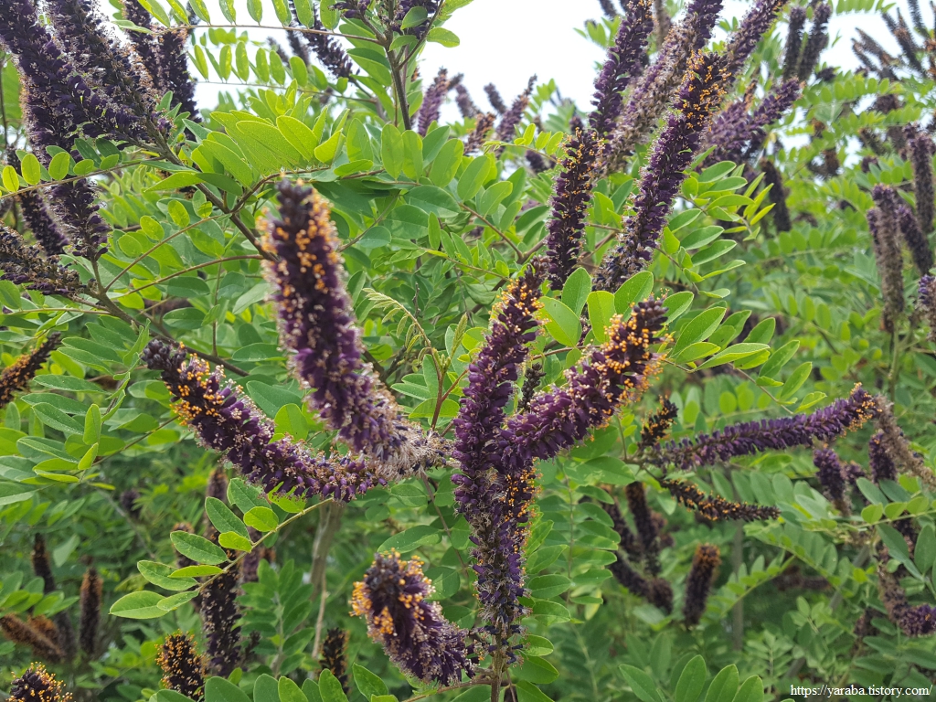 수로 주변에서 독특한 꽃을 만났다. 잎은 아카시 나무와 비슷한데 꽃은 완전히 다르다. 이름하여 족제비싸리라고 한다. 콩과 식물로 하천변에서 어렵지 않게 만날 수 있는 식물이다. 가뭄에도 강하고 염분에도 강한 데다가 콩과 식물로 토질 개선에도 좋고 줄기로는 바구니를 만들 수도 있으며 약재로도 활용할 수 있으니 여러모로 매력 있는 식물이다.