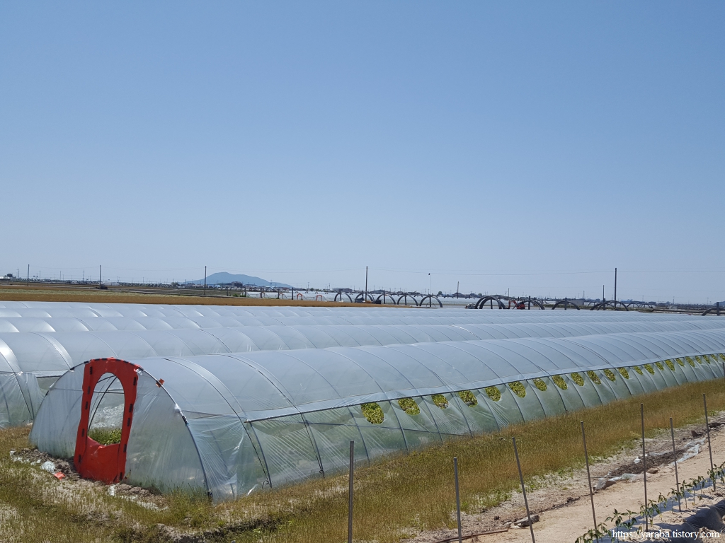 길가에 버려진 파지 감자를 보면서 아우! 아까워라! 하며 탄식을 연발하지만 상품성 없는 감자를 처리해야 하는 농민들의 고민이 있었을 것이다. 길을 좀 더 가니 아직 감자를 수확하지 않는 하우스도 있었다. 지퍼를 단 하우스 출입구를 보니 감자 재배와 관련한 축적된 노하우와 체계가 있음을 짐작할 수 있었다.