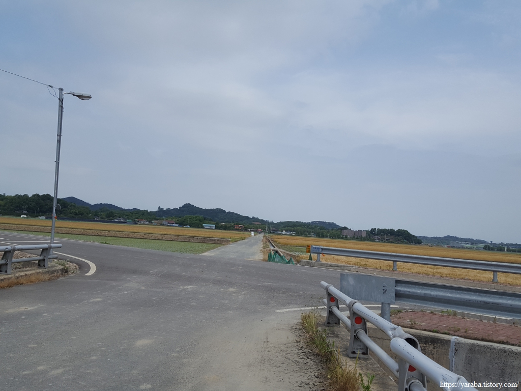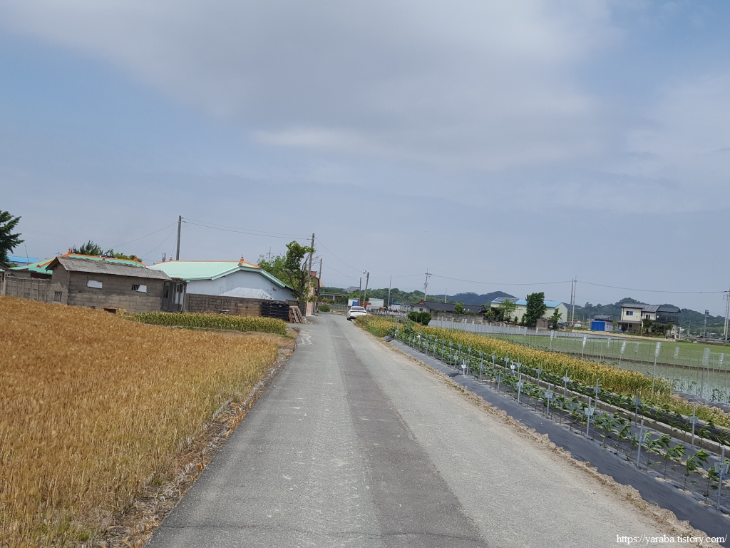 옥성마을을 지난 길은 남군산로 도로를 가로질러 농로를 이어 걷는다.