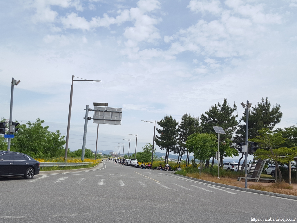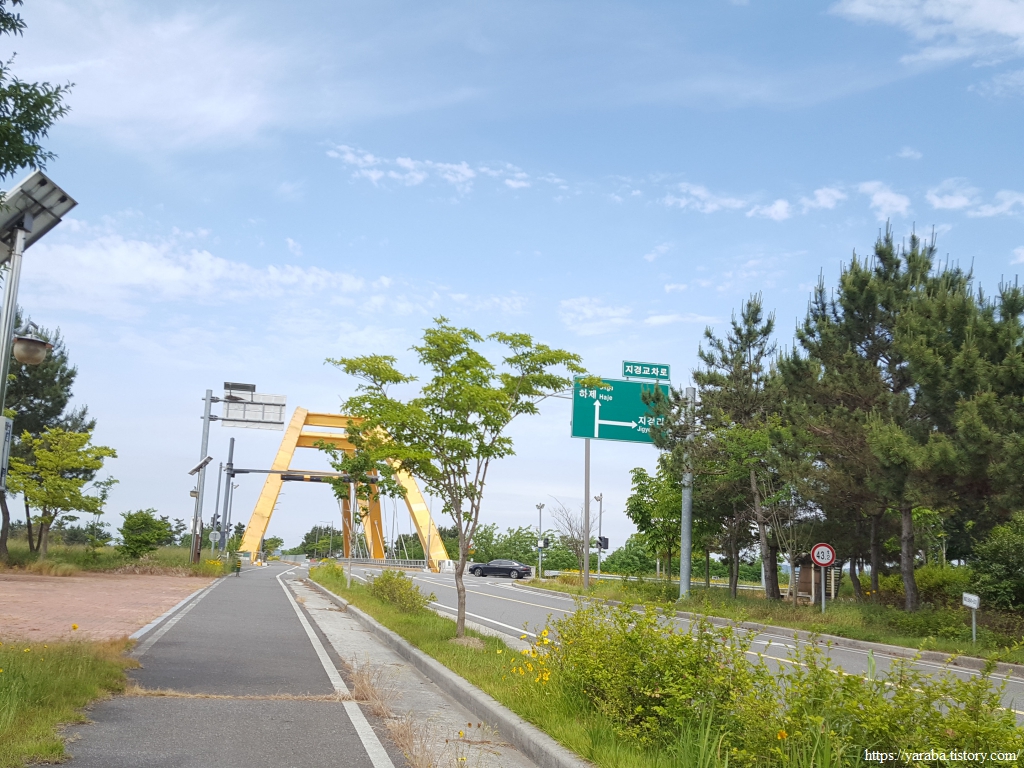 길은 지경 교차로에서 다리를 건너며 군산시 대야면 지경리에서 회현면 증석리로 넘어간다. 그런데 지경교차로 인근 도로는 자동차 대신 인라인 스케이트를 즐기는 사람들로 가득하다. 가끔씩 지나가는 자동차가 있기는 하지만 자동차가 거의 없어서 직선으로 쭉 뚫린 도로를 인라인 스케이트를 타는 것으로 즐기는 모양이다. 새만금이 사람들에게 준 선물일 수도 있겠다는 생각이 들었다. 매년 새만금 방조제 일원에서는 인라인을 타고 마라톤 코스를 달리는 인라인마라톤대회가 열린다고 한다.
