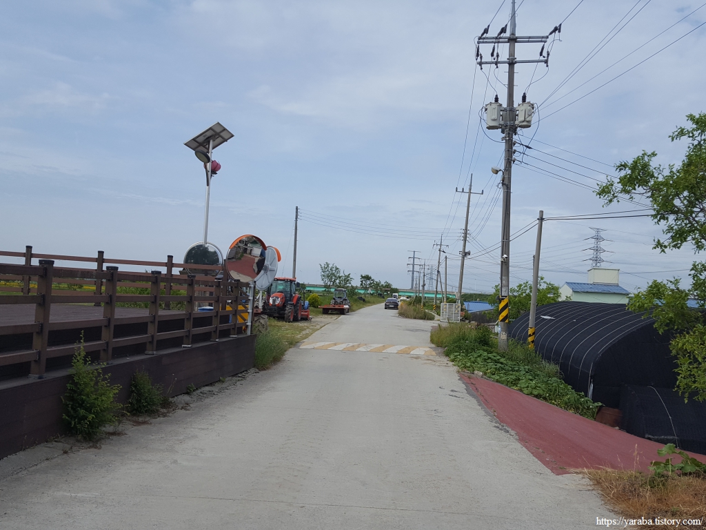 배수갑문을 지난 길은 농로를 따라서 신기촌 마을로 진입한다.