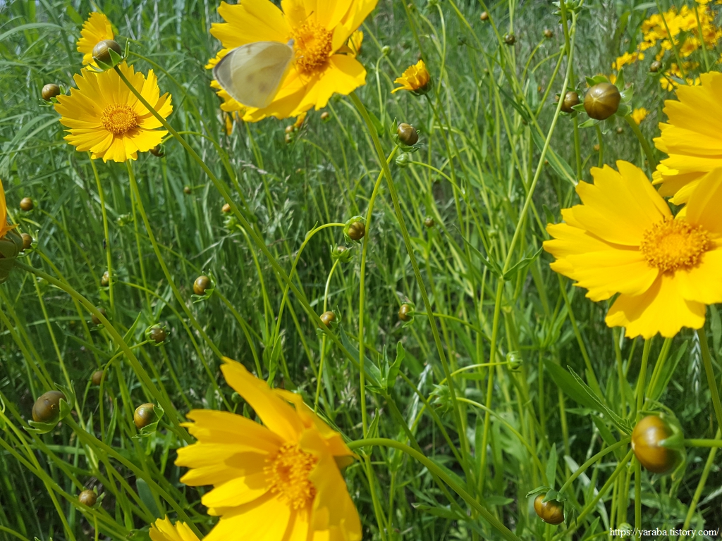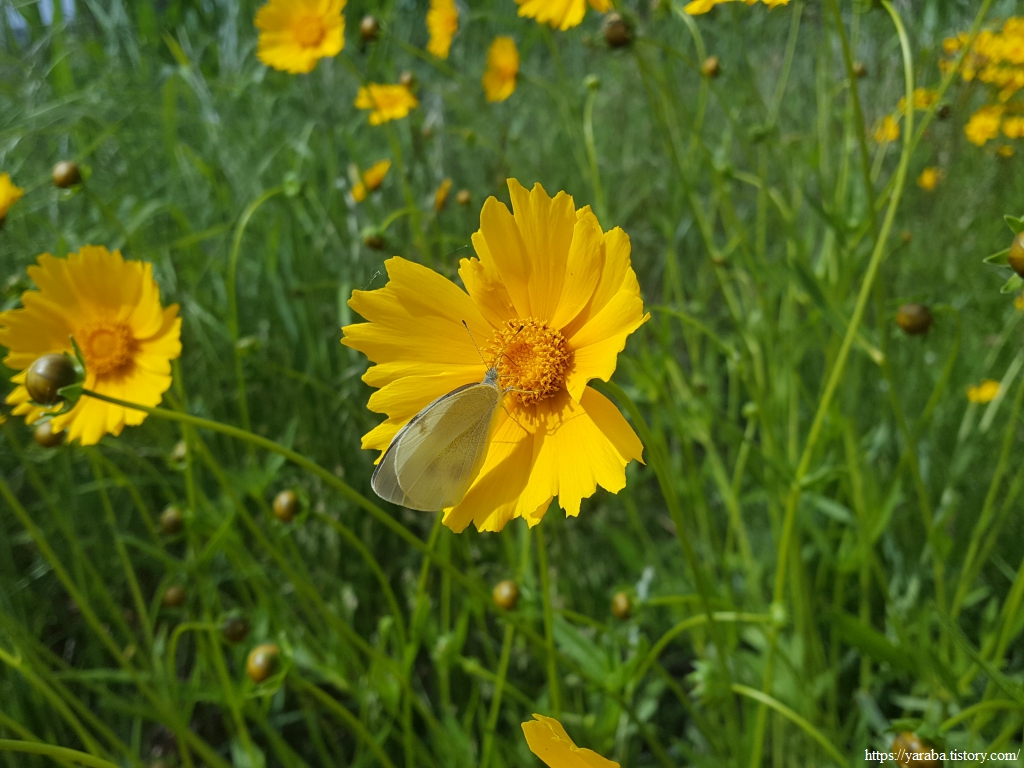 금계국에 앉은 나비를 사진에 담으려고 여러 번 시도하지만 쉽지 않다. 곤충이든 동물이든 사람은 위협적인 존재인 모양이다.
