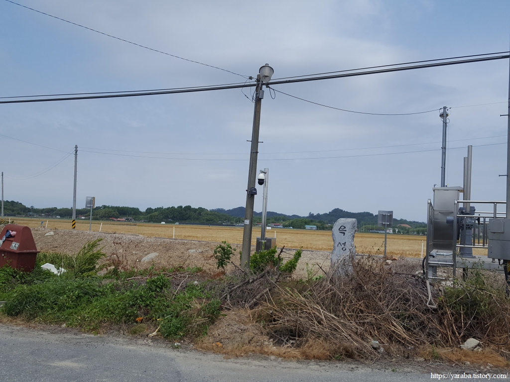 회현면 읍내를 향해서 북쪽으로 이동하는 길은 간척지 들판을 가로지른다. 목초를 키우는 논 한쪽에 알 수 없는 기호의 표식이 세워져 있었는데 도무지 예상도 추측도 할 수 없었다.