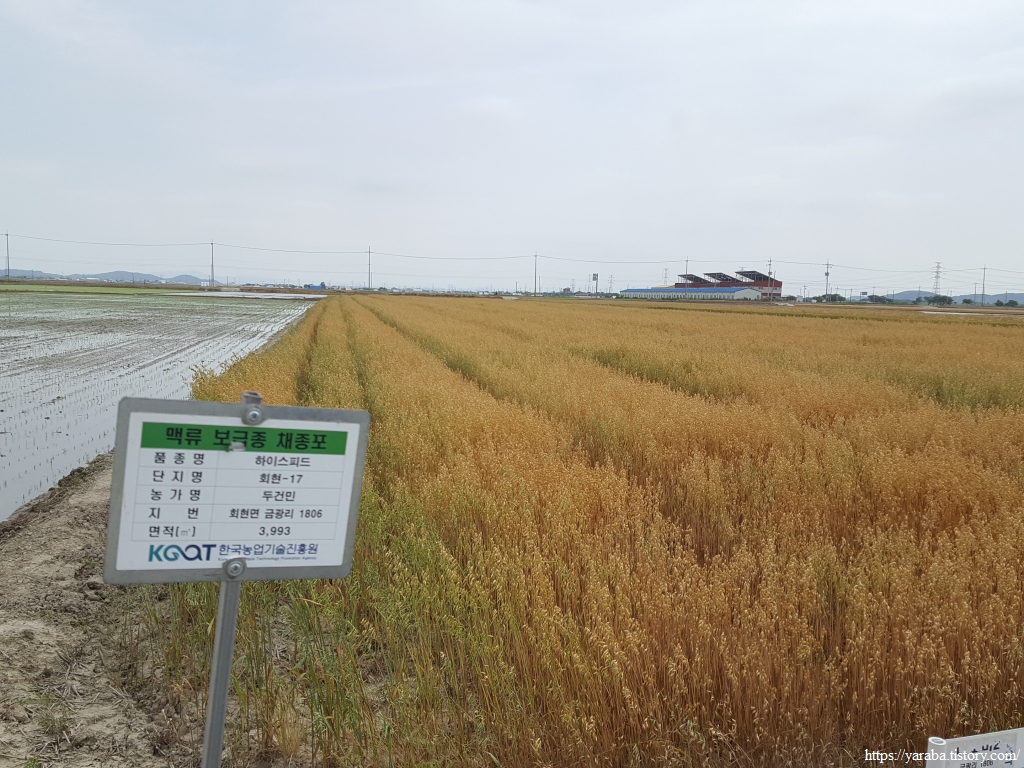 이곳 들판에서는 농촌진흥청이 개발한 하이스피드라는 품종의 귀리도 만날 수 있었다. 이름답게 3개월이면 수확할 수 있다고 한다. 다른 곡물에 비해 단백질 함량이 높다는 귀리에 마음이 간다.
