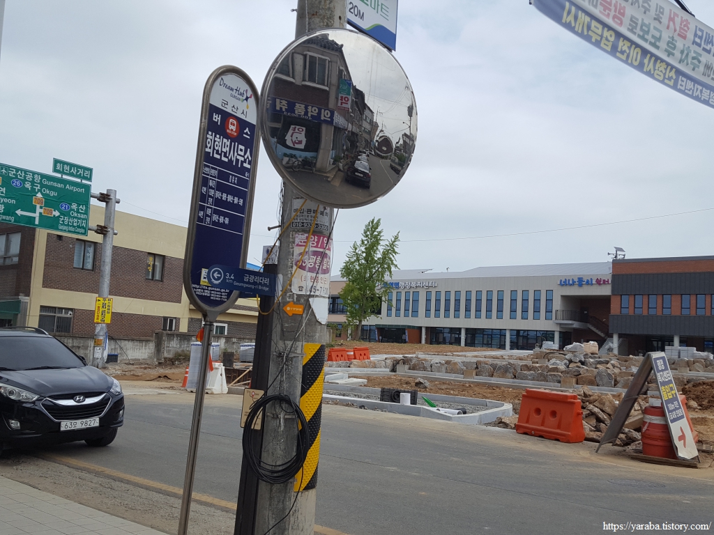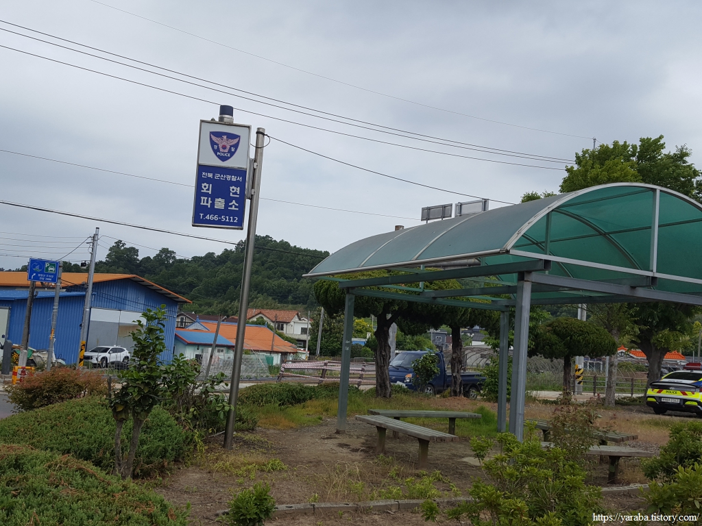 언덕길을 넘어가면 회현면 읍내에 닿는다. 파출소 앞의 쉼터에서 잠시 휴식을 취하고 여정을 이어간다. 회현면은 옛날에는 회미현이었다고 한다.