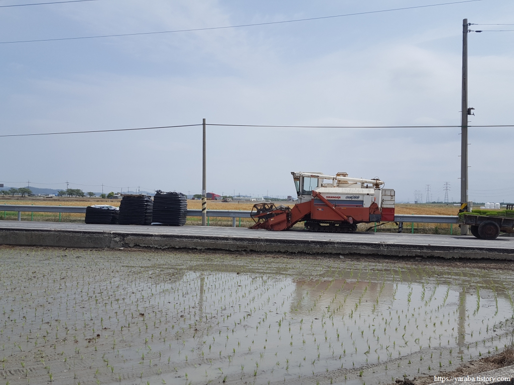 보리나 밀을 많이 심는 동네이다 보니 벼만 재배하는 동네에서는 볼 수 없는 콤바인도 볼 수 있다. 밀이나 보리를 벼 베는 콤바인으로 수확해도 되기는 하는데 나름 차이가 있을 것 같다.