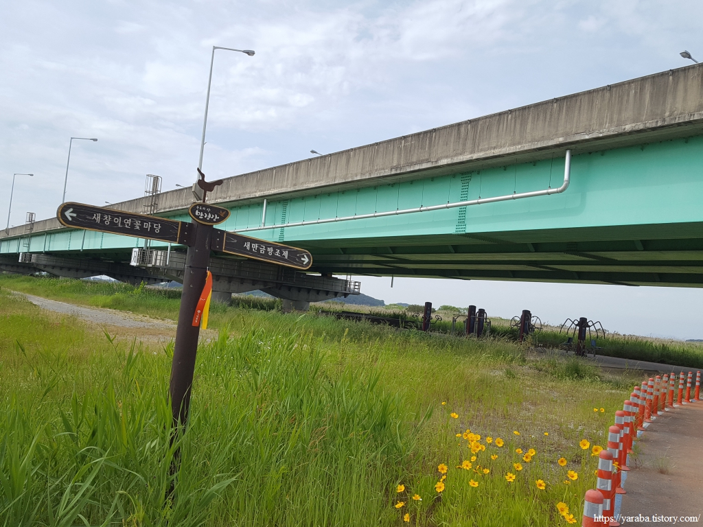 만경강 둔치의 자전거길을 걷지만 이곳을 지나는 라이더들은 거의 없다. 바로 위 도로로 가는 것이 그들에게는 편하고 좋은 모양이었다.