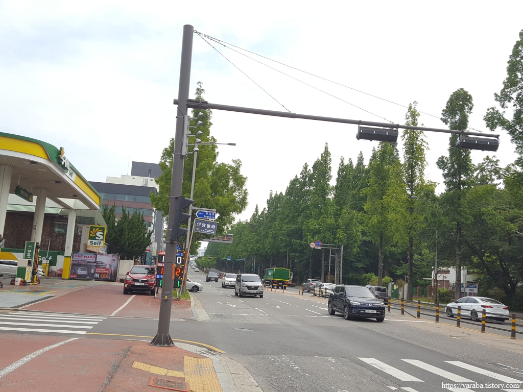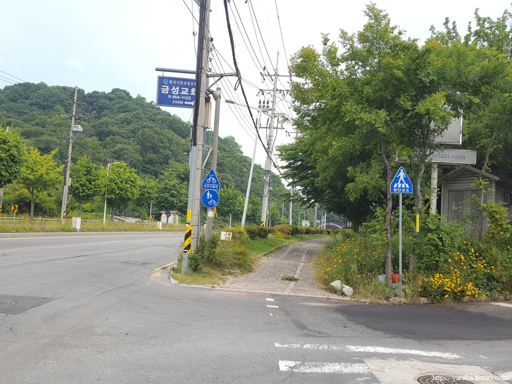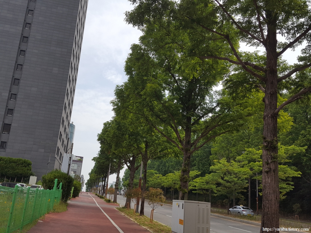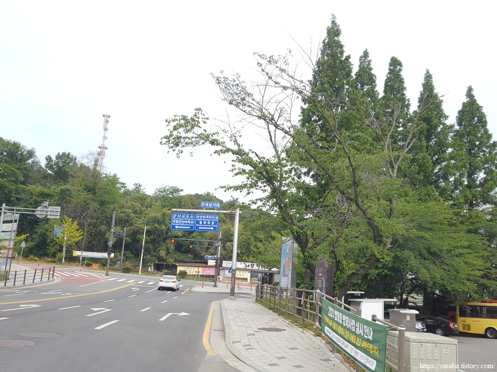 원래는 은파호수공원을 나오면 길을 건너서 바로 산으로 올라가야 하지만 지금은 등산로가 공사 중이라 공원 앞에서 우회전하여 대학로 도로를 따라 북쪽으로 이동한다.