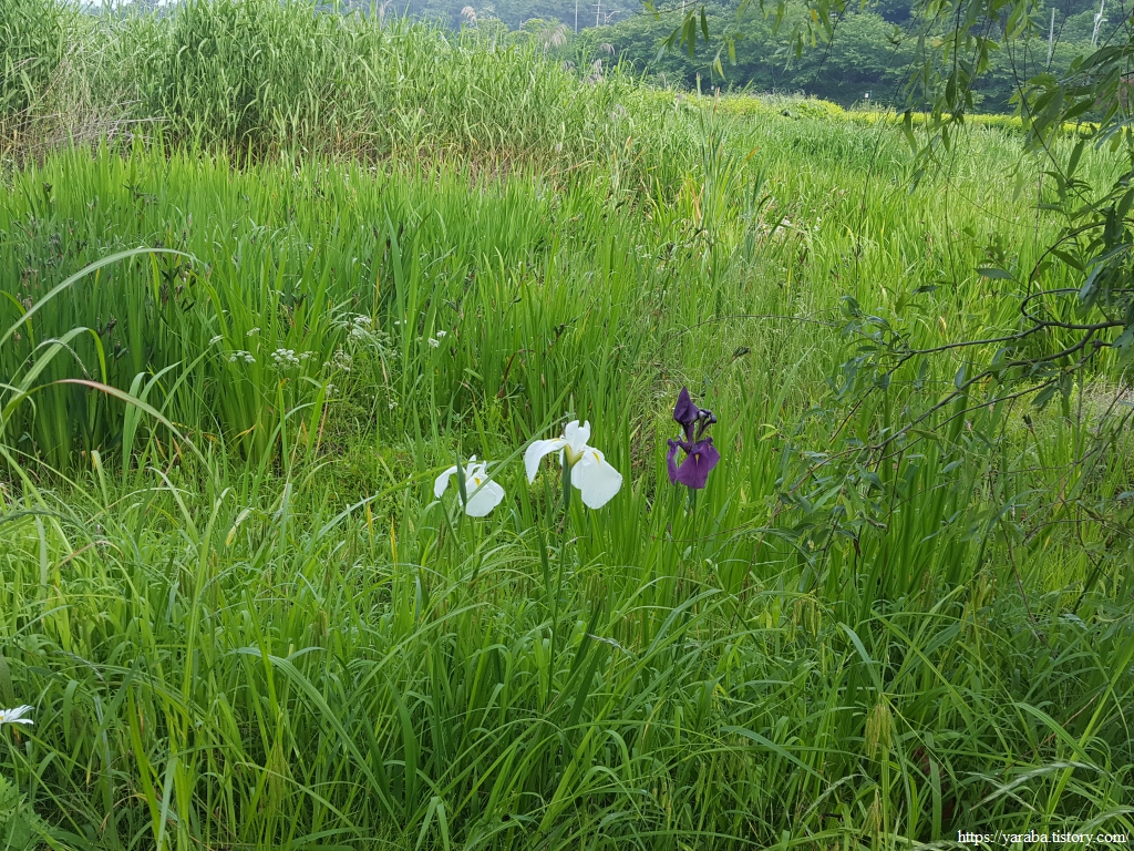 호수 끝자락 작은 습지에서는 꽃창포가 수줍게 꽃을 피웠다.