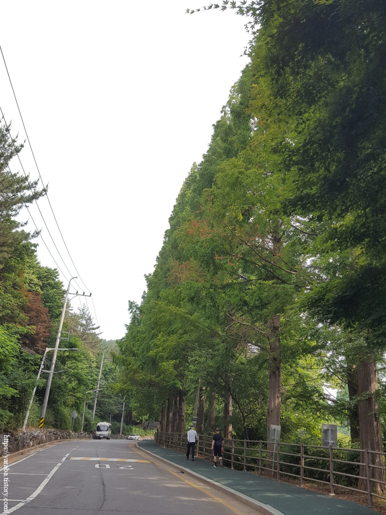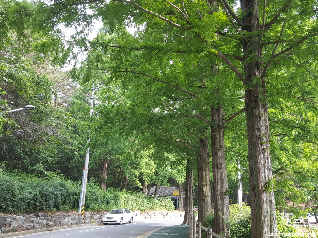둑방길을 지나온 길은 은파호수순환도로를 따라서 물빛다리광장으로 이동한다. 쭉쭉 뻗은 메타세쿼이아가 인상적인 산책길이다.