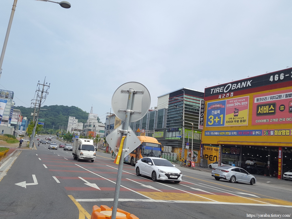대학로를 따라서 호텔들을 지나며 북쪽으로 이동하던 길은 나운사거리에서 다시 좌회전하여 공단대로를 따라서 오르막 길을 오른다.