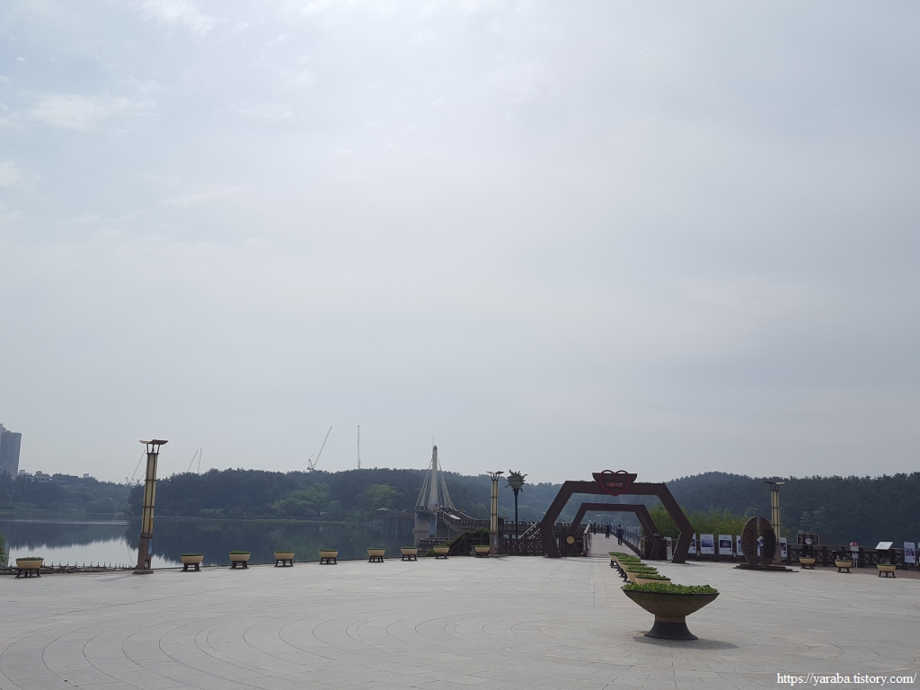 녹음이 짙어진 메타세쿼이아 길을 따라 이동하여 물빛다리광장에서 호수를 건너온 원래의 서해랑길과 합류하여 길을 이어간다.