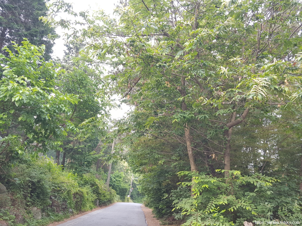 특유의 냄새를 풍기는 밤꽃이 피었다. 6월 초 초여름이라는 것이 실감이 난다. 숲을 관통하는 작은 언덕길을 통과한다.
