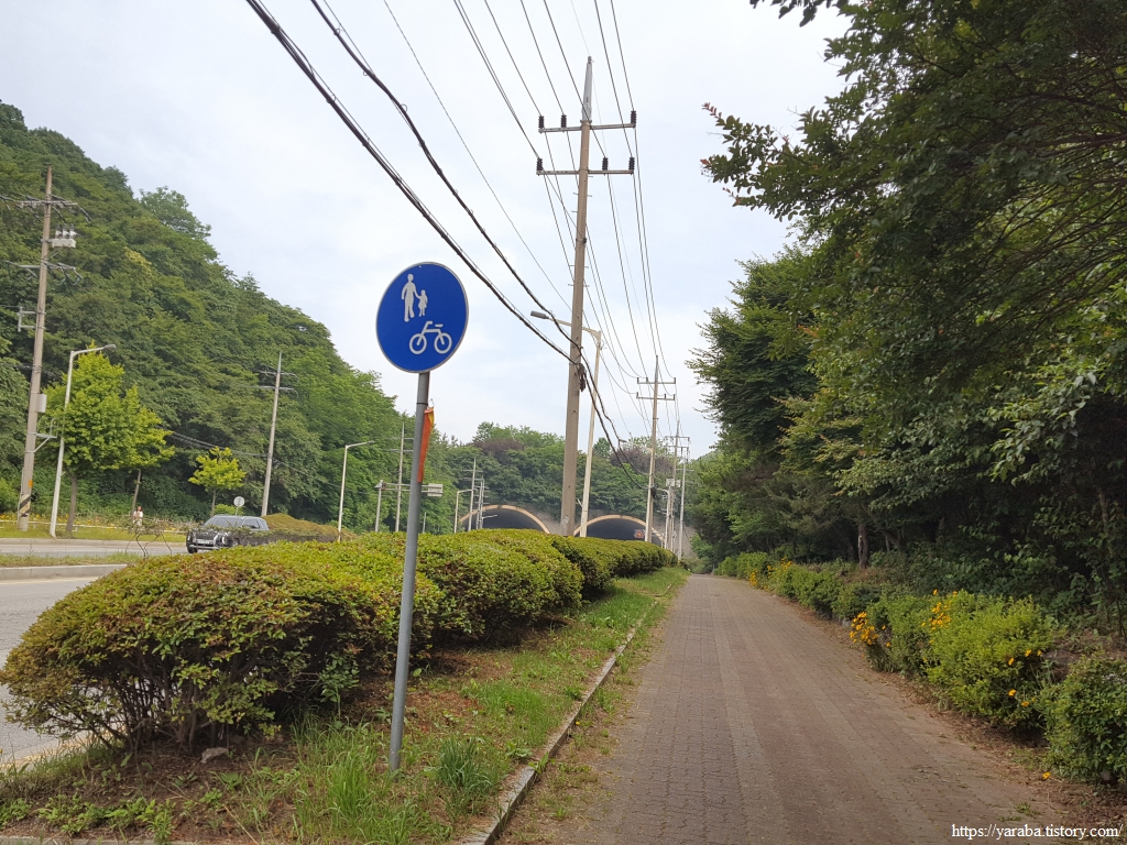 공단대로 오르막 언덕길을 오르다 보면 대로를 가로지르는 터널을 만나는데 산을 뚫은 터널이 아니라 큰 도로로 인해 길이 막힌 동물들을 위해 2009년에 만든 길이 65미터의 생태통로이다. 기존에 있던 도로 위해 터널을 씌운 것이다.