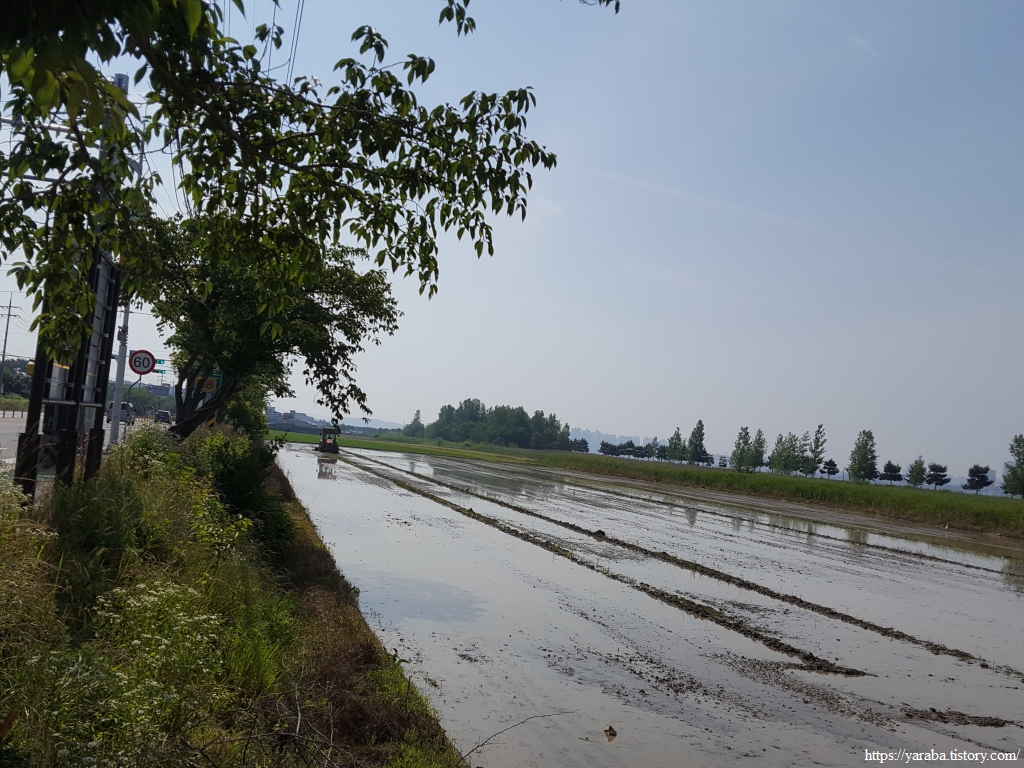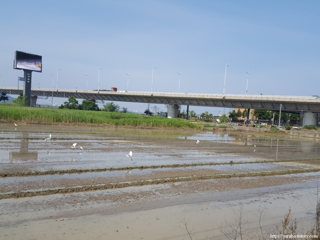 트랙터가 모내기를 준비하며 땅을 갈고 있는 논에서는 미꾸라지를 잡으려는 새들의 파티가 열렸다. 현대 농업에서 만날 수 있는 사람과 기계, 새가 어우러진 독특한 풍경이다.