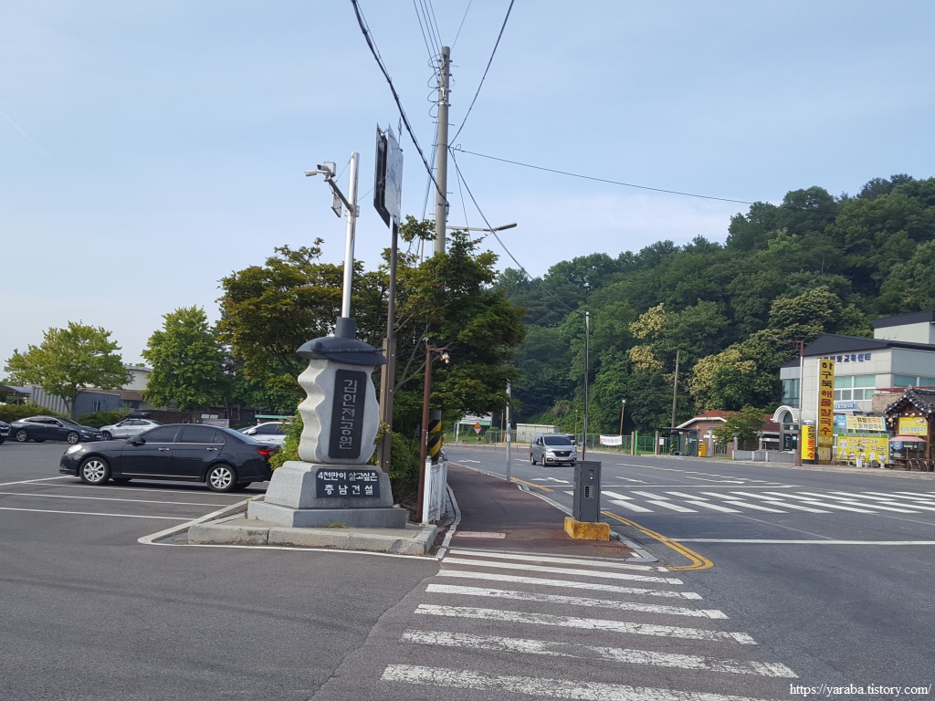 하구둑을 건너온 길은 하구둑 사거리에서 좌회전하여 하구둑 관광단지 안으로 들어간다. 김인전 공원이라는 표식을 통해서 서천 출신의 교육자이자 목사이자 독립운동가인 인물을 알아보게 된다. 젊은 시절 부친과 함께 서천에 기독교 학교를 세웠고, 목사가 된 이후에는 전주에서 목회를 했으며 3.1 운동 이후 일제의 감시가 심해지자 상해로 망명하여 상해 임시정부에서 독립운동을 전개했던 인물이다.