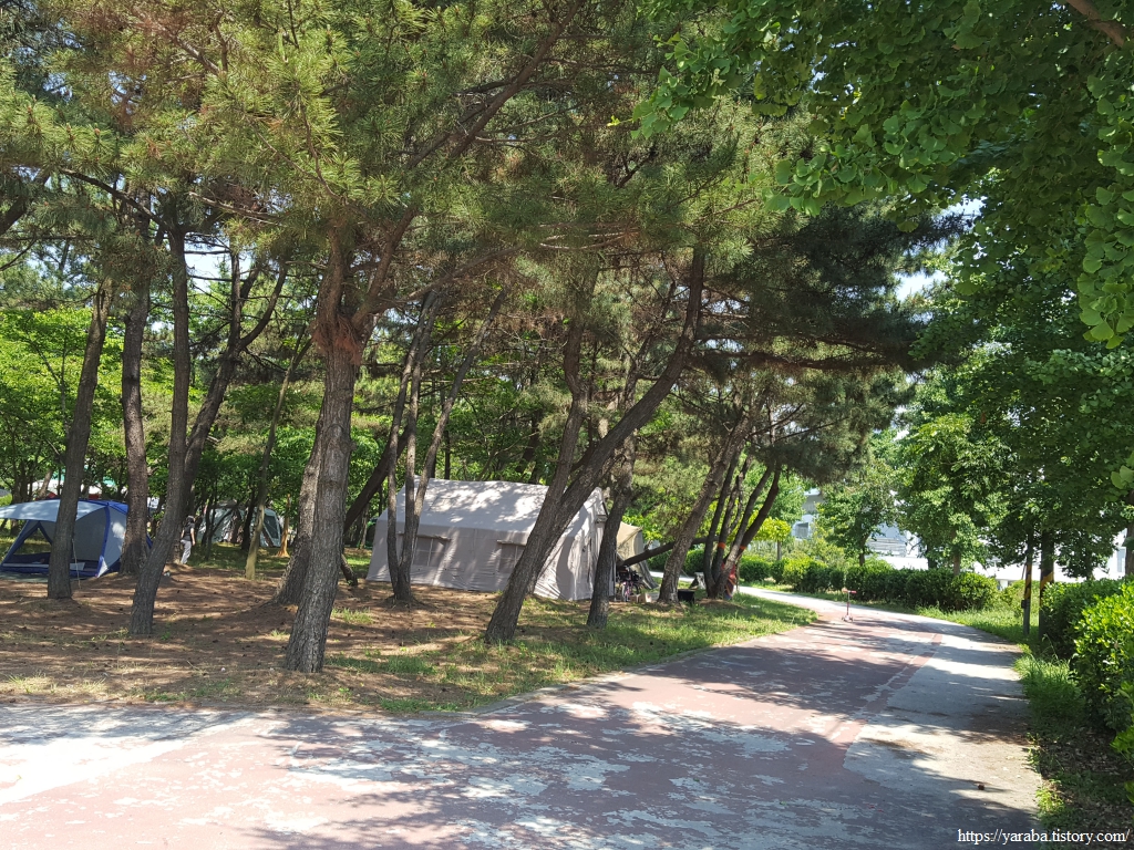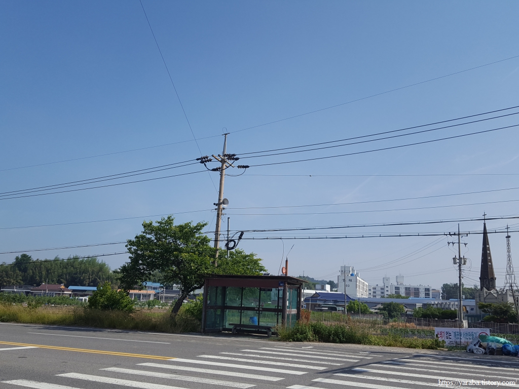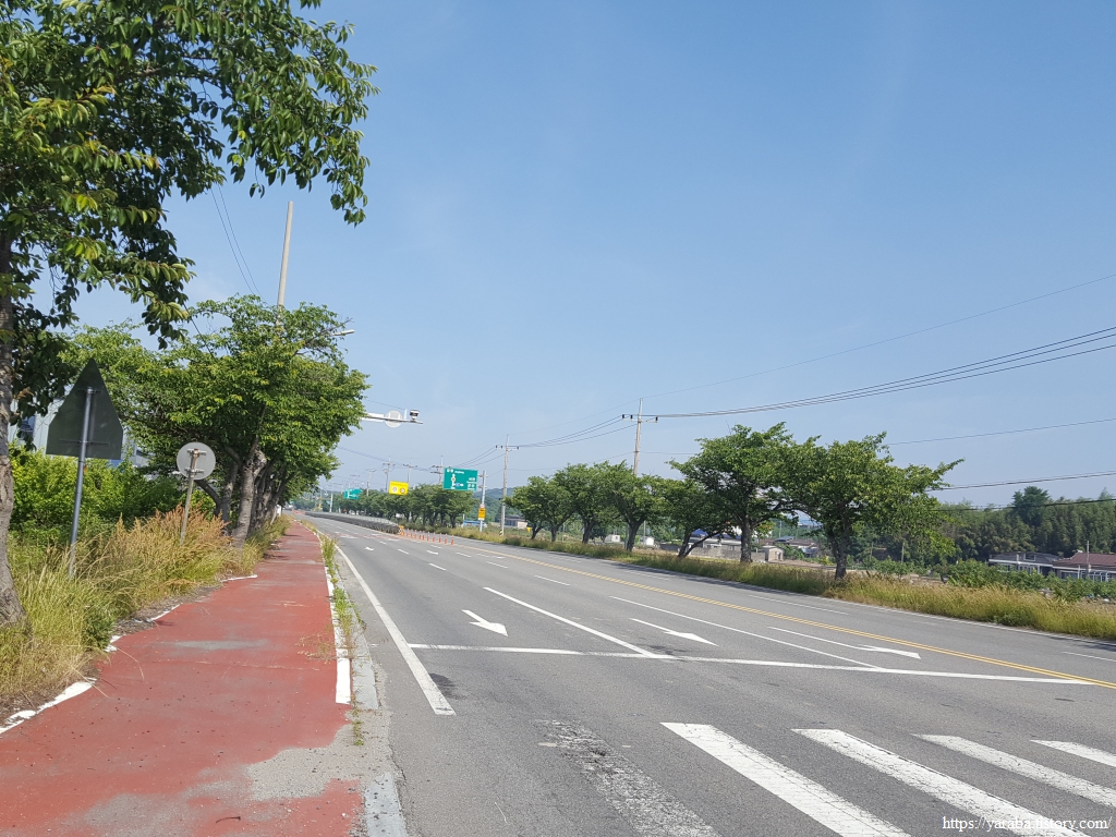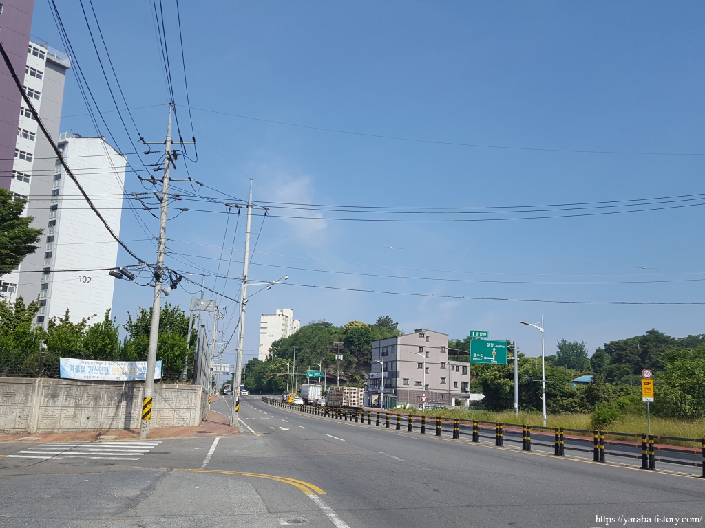 길은 서천 국민여가캠핑장 옆을 지나서 장산로 도로를 따라 계속 내려간다. 종점까지 계속 도로변을 걷는다고 보면 된다.
