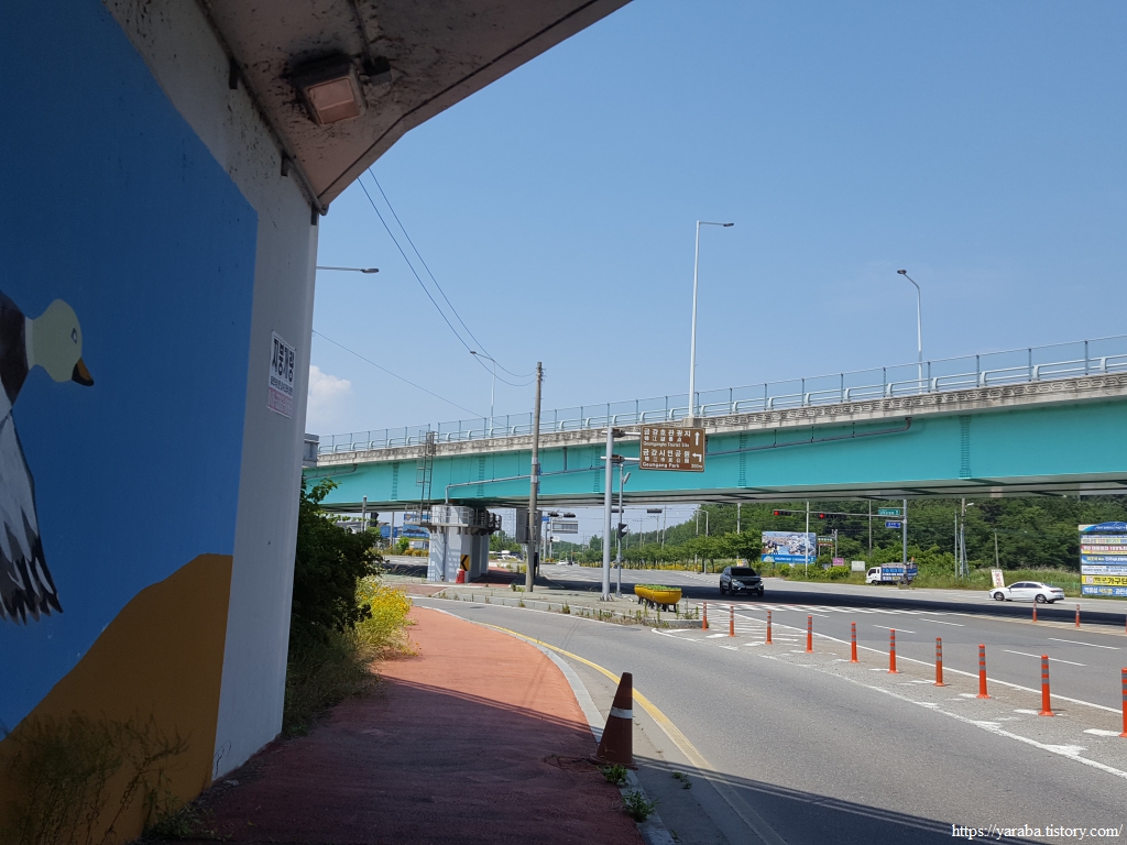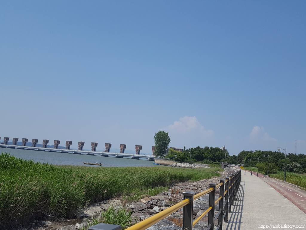 공원 외곽을 돌아온 길은 금강로 도로를 따라 금강 하구둑으로 진입한다.