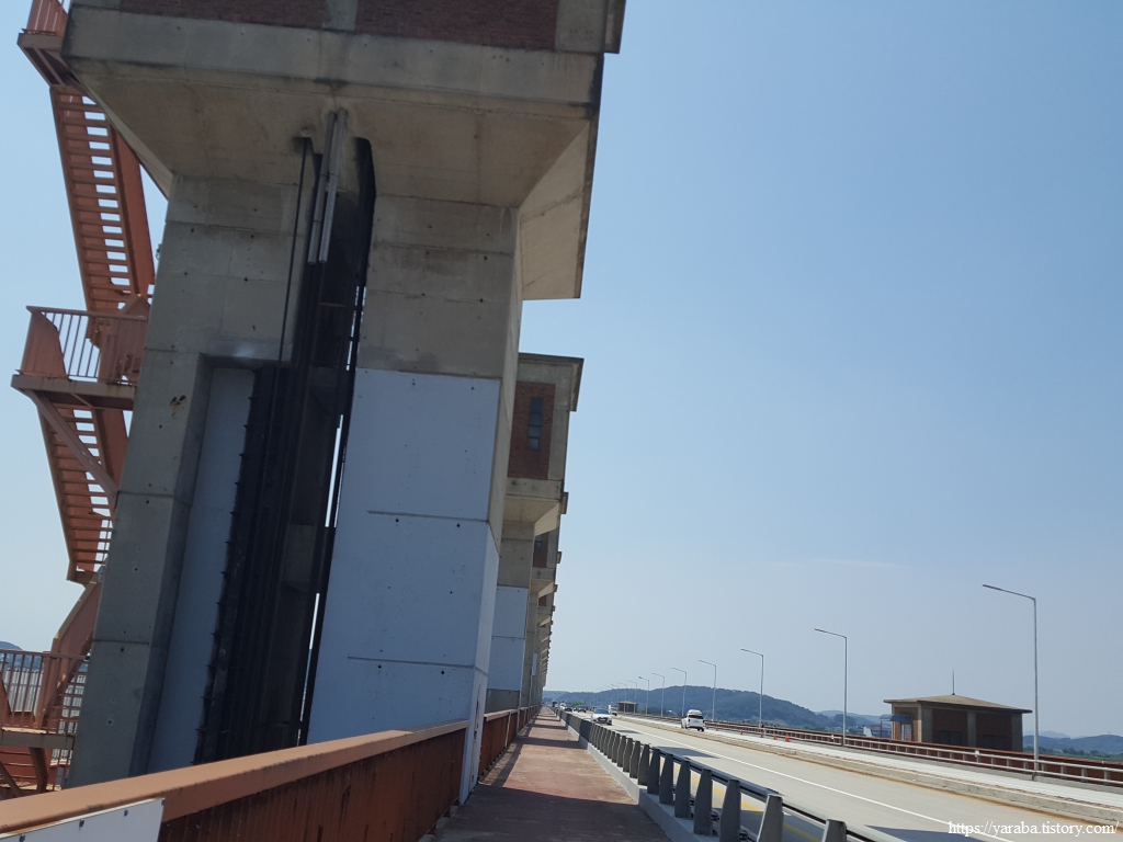 하구둑 위로는 인도, 4차선 도로도 지나지만 익산을 출발하여 군산, 대천, 홍성을 거쳐 천안에서 경부선과 합류하는 장항선 철도도 함께 한다.