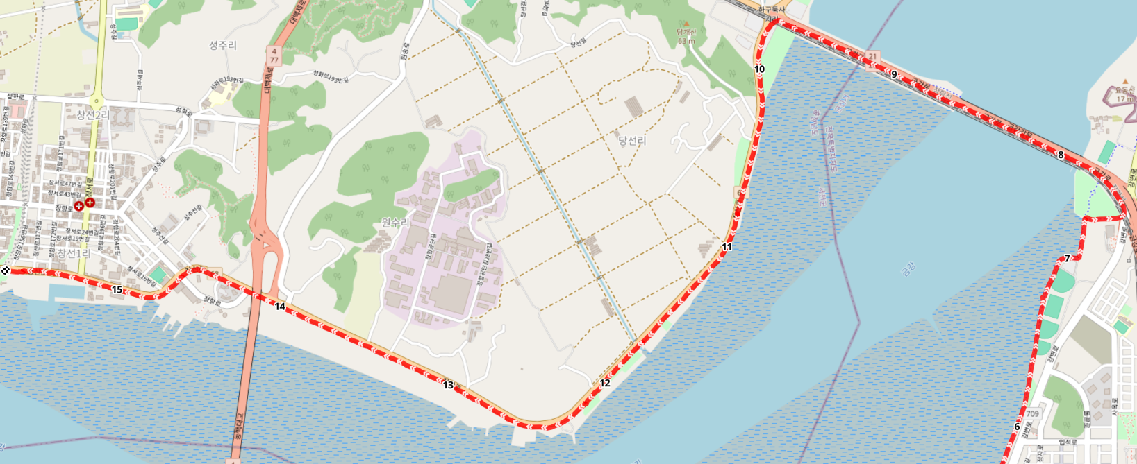 계속 도로를 따라서 항구 방향으로 이동한다.