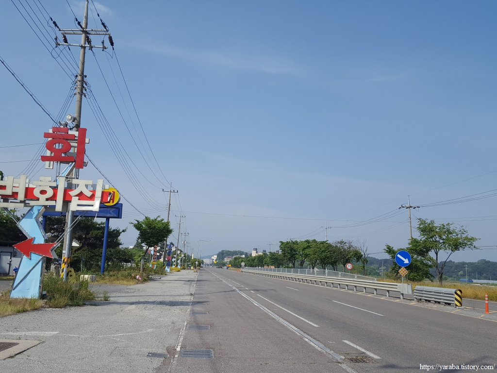 도로변으로 서천 음식문화특화거리라하여 횟집들이 이어진다. 갈길 바쁜 우리에게는 그림의 떡이다.
