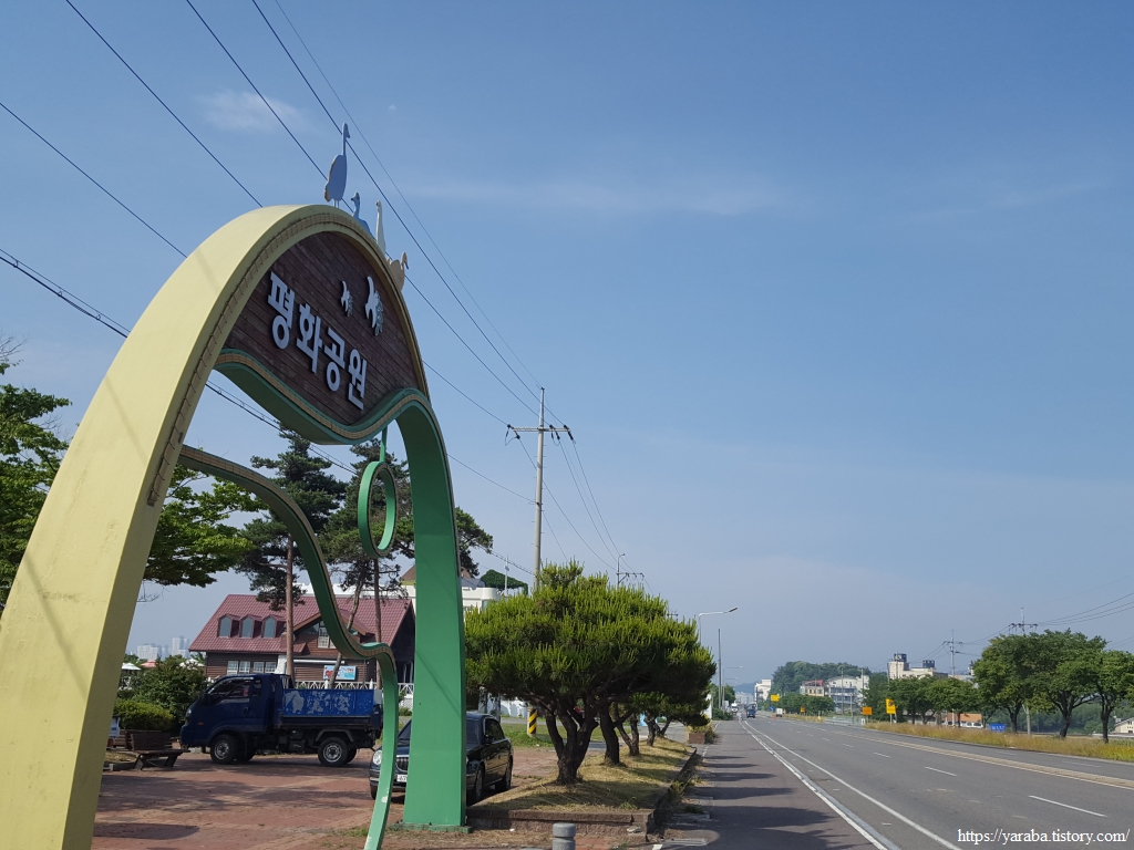 월남참전기념탑이 있는 평화공원도 지난다. 지도에는 철새공원이라는 이름으로 되어 있다. "전쟁과 평화"는 공존할 수 없는 단어 같으면서도 인류 역사에서 쳇바퀴 돌듯 반복되는 모습이기도 하다. 다만, 우리나라가 열강의 전쟁에 참여한 것이 "세계 평화와 자유 민주주의 수호"를 위해서라는 말로 포장하는 것에는 한계가 있다. 톨스토이가 나폴레옹 전쟁을 그린 "전쟁과 평화"에서 말하는 역사의 흐름 속에 있는 인간의 모습 정도라면 혹시 모를까......