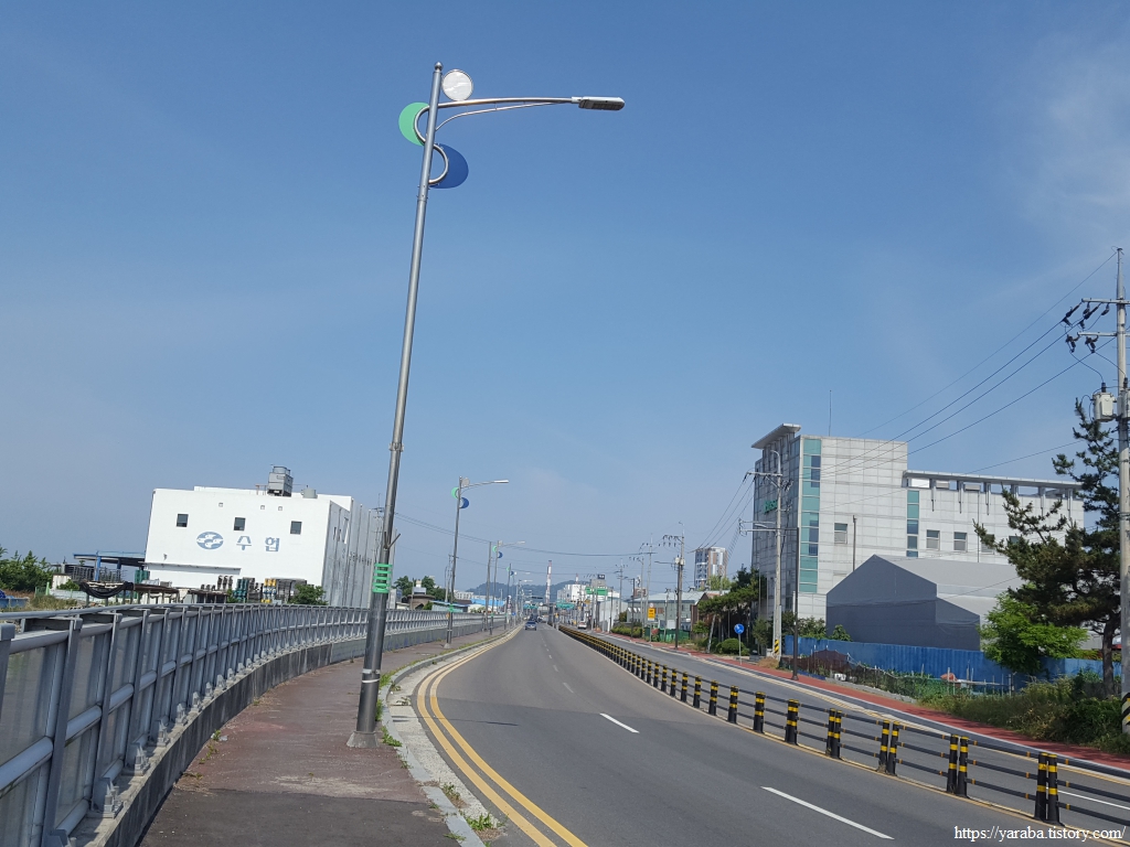 길이 어선 물양장 인근으로 나오니 멀리 동백대교도 이제 북쪽으로 보인다.