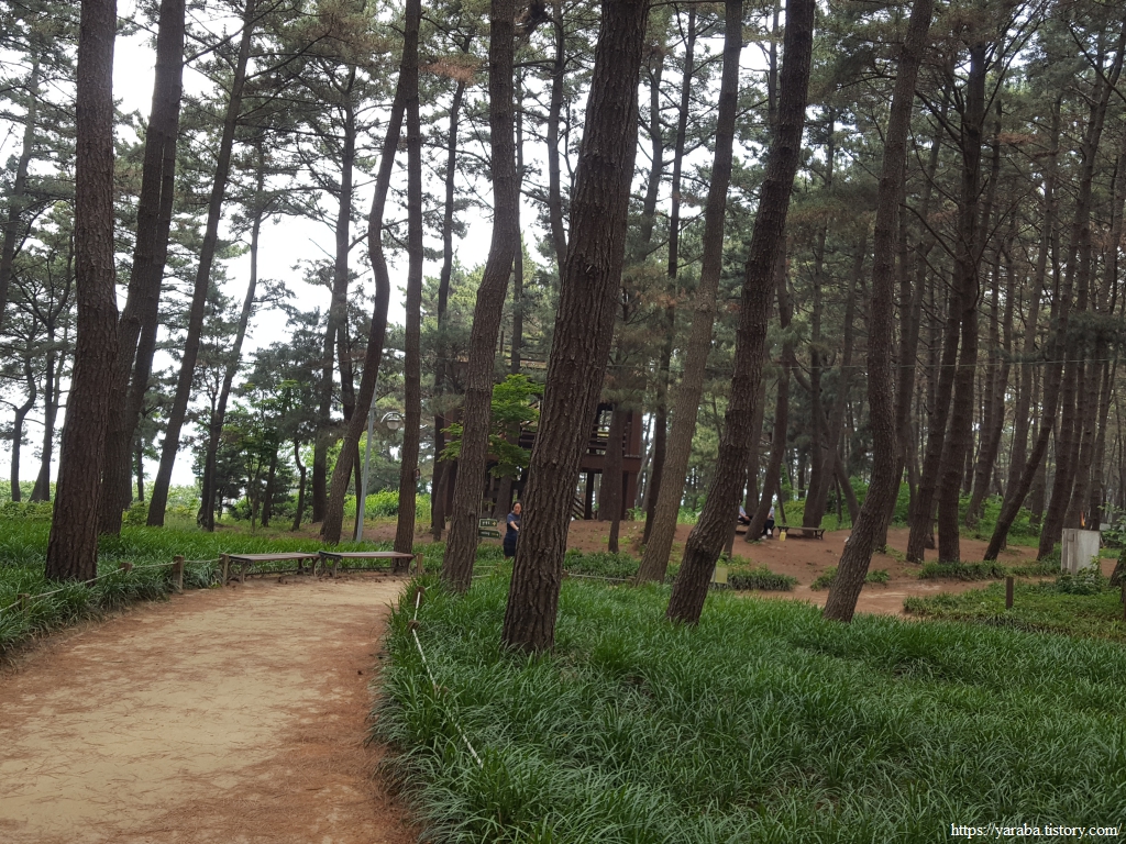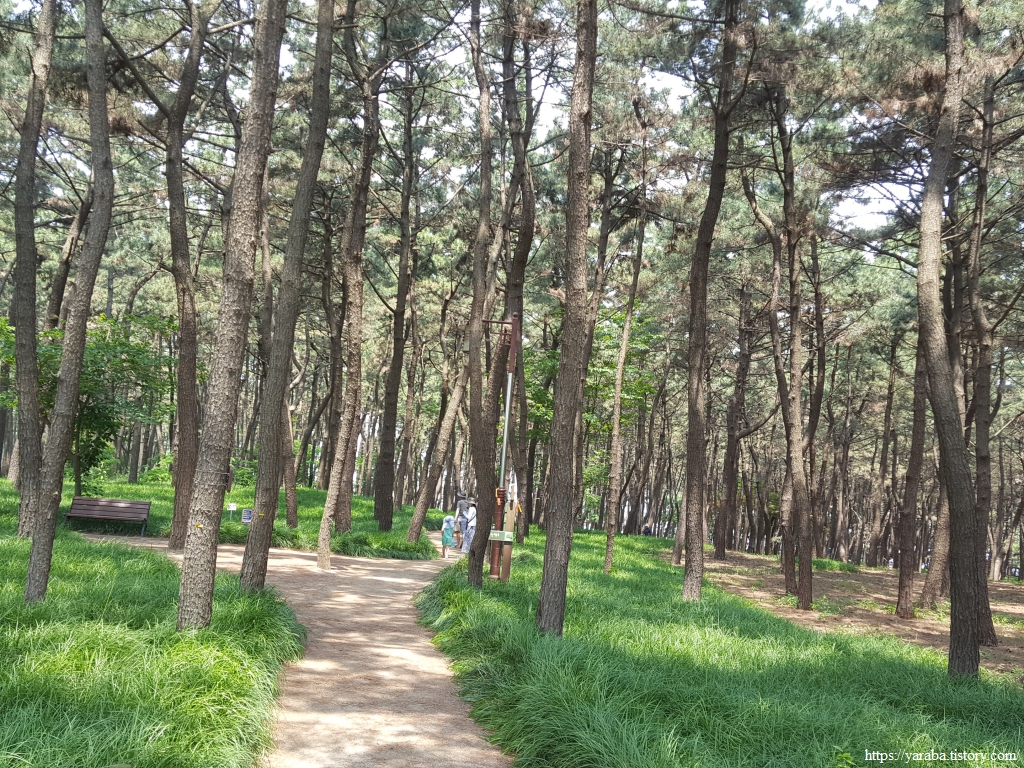 장항 스카이워크 아래의 산책로를 따라서 북쪽으로 이동한다. 사람들이 많이 찾는 곳이라 조용히 걷기는 어렵지만 그래도 숲길은 좋다.