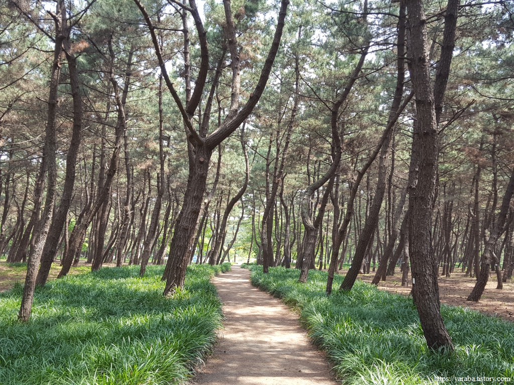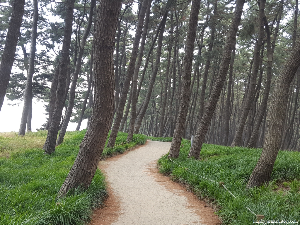 솔숲 아래로 맥문동을 가지런히 심어 놓은 깔끔한 산책로를 따라서 길을 이어간다.