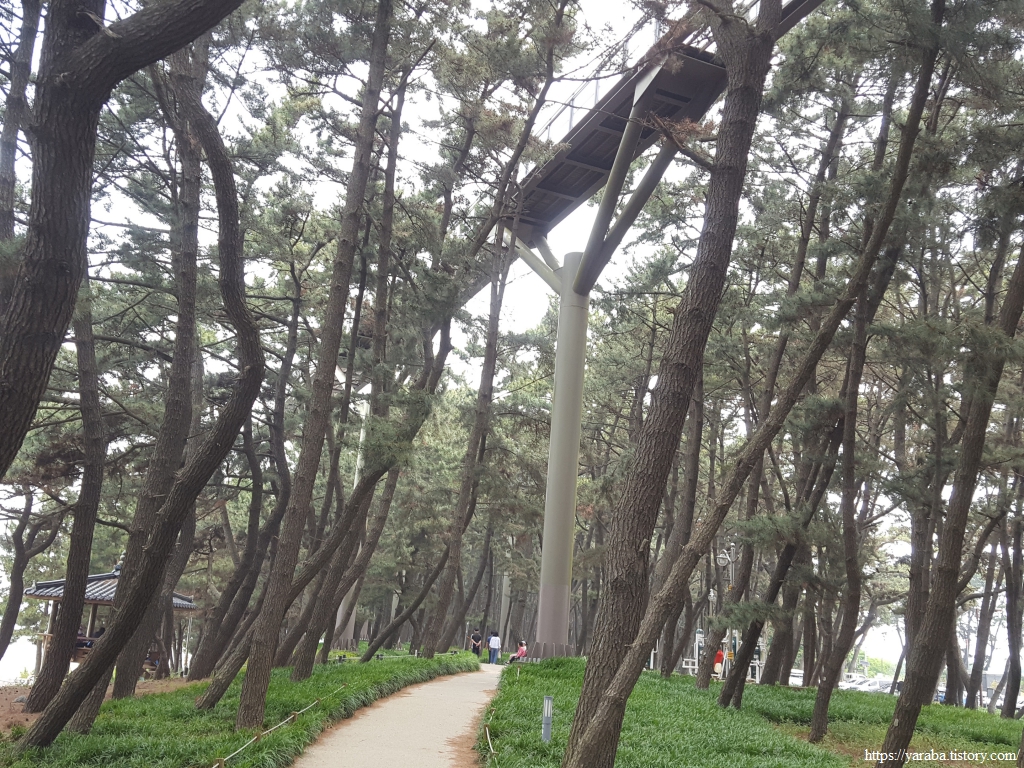솔숲 산책로가 해변으로 나오면 장항스카이워크도 만난다. 사람이 많아서 우리는 그냥 해안 산책로를 걷기로 했다.