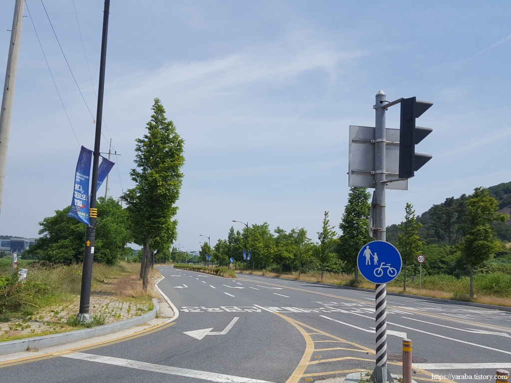 산업단지를 벗어나면 북쪽으로 방향을 잡아서 길을 이어간다. 직진하면 국립해양생물자원관으로 가는 길인데 중간에 좌회전하여 장항송림산림욕장으로 이동한다.