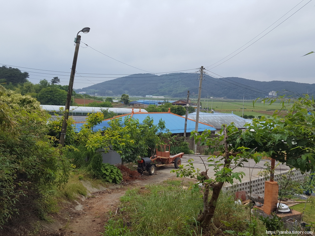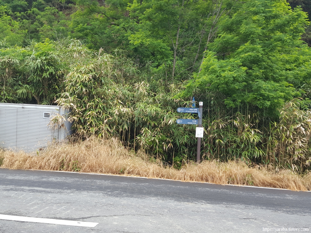 도로를 벗어난 길은 남쪽으로 장구마을을 거쳐서 돌아가는 경로를 걷는다.