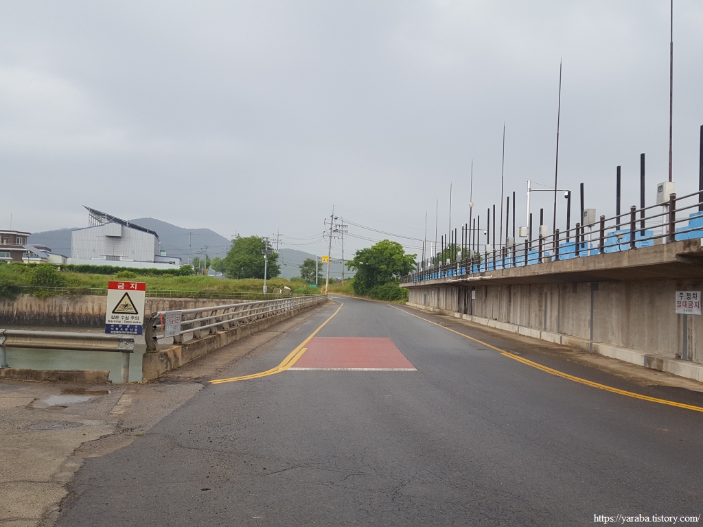 날이 흐리고 보슬비가 살금살금 내리지만 그냥 걷기로 했다. 장천로를 도로를 따라서 판교천을 건넌다. 판교천은 내륙의 판교면 서부저수지에서 시작한 하천이다. 서부저수지는 내륙에 있는 대규모 저수지인데 일제 강점기에 만들어졌다고 한다. 장항선 기차를 타면 철길이 이 저수지를 남북으로 가르며 지나간다.