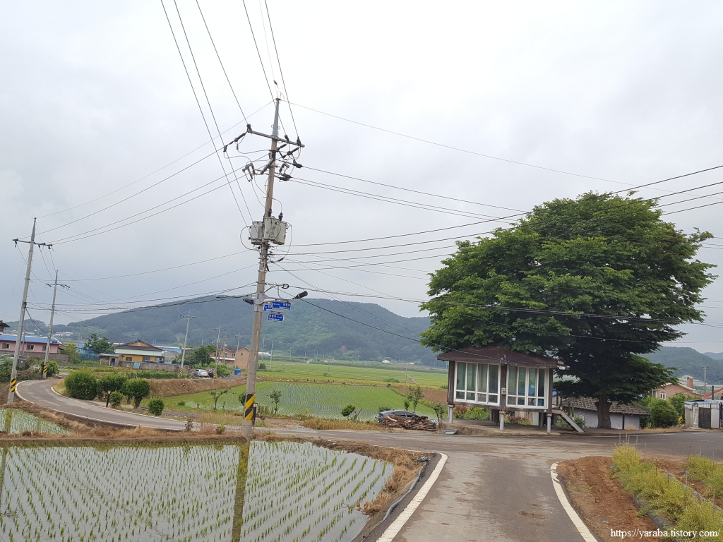 커다란 나무가 그늘을 만들어 주고 있는 당정마을의 정자를 지나 마을을 빠져나가면 다시 들길을 가로지른다.