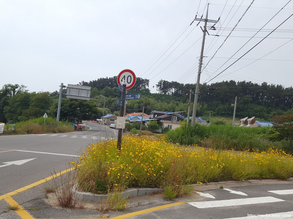 들길을 걸어온 서해랑길은 다사 2리 마을에서 해안도로와 합류하여 해안길 걷기를 시작한다.