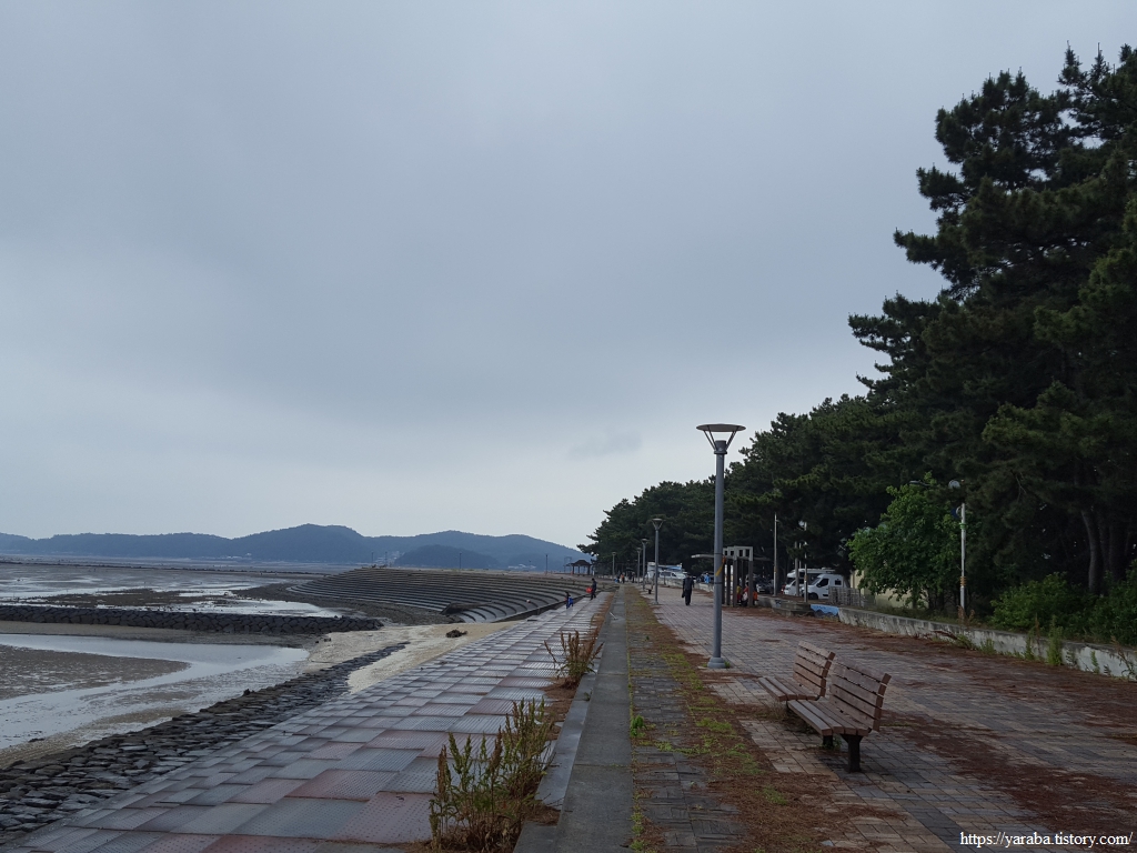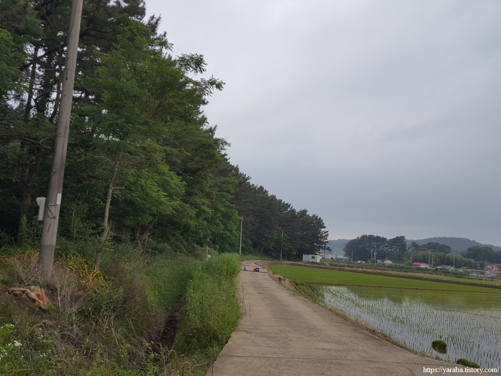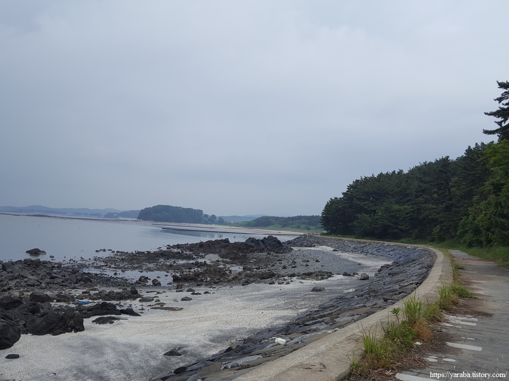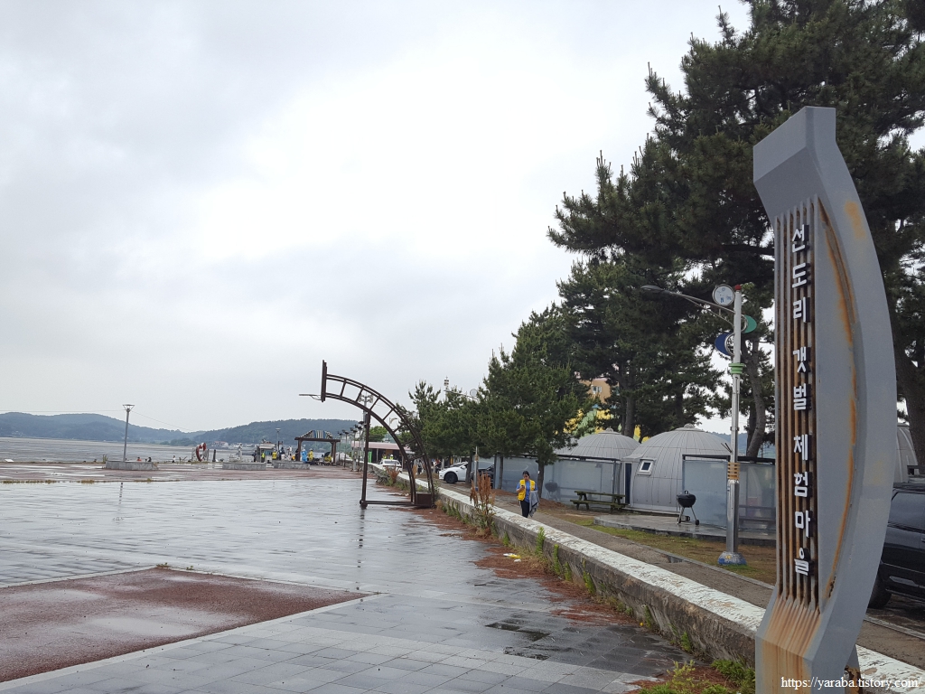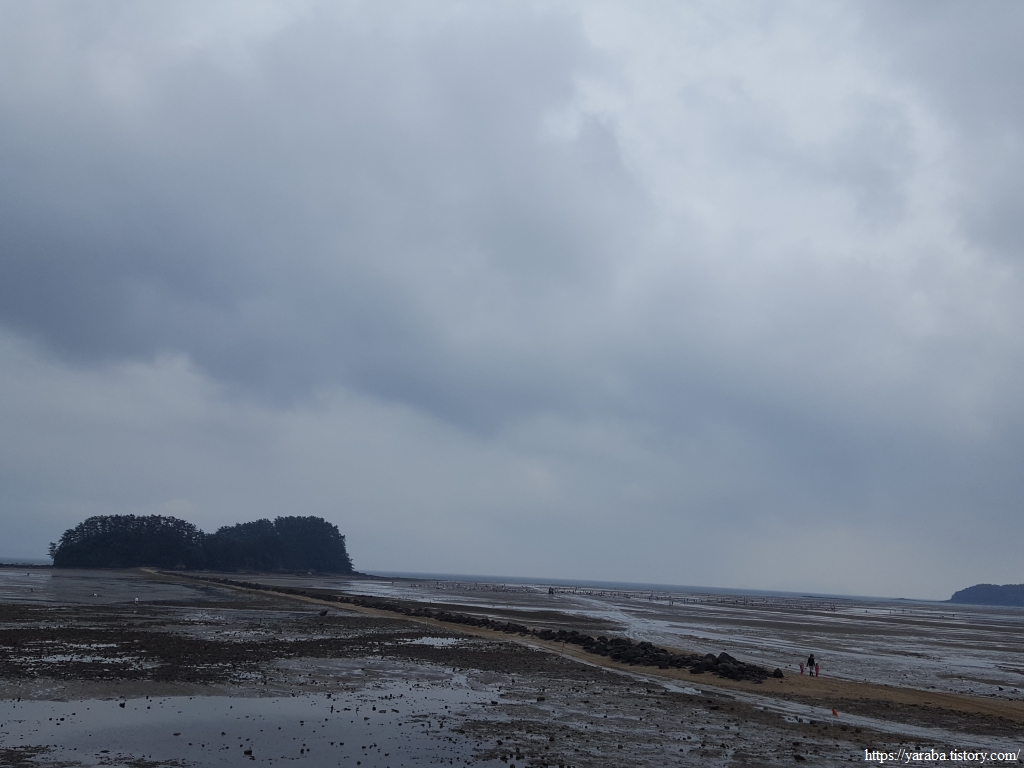 거친 비와 몰려오는 먹구름 아래서 갯벌체험로 도로를 따라 선도리로 향한다.
