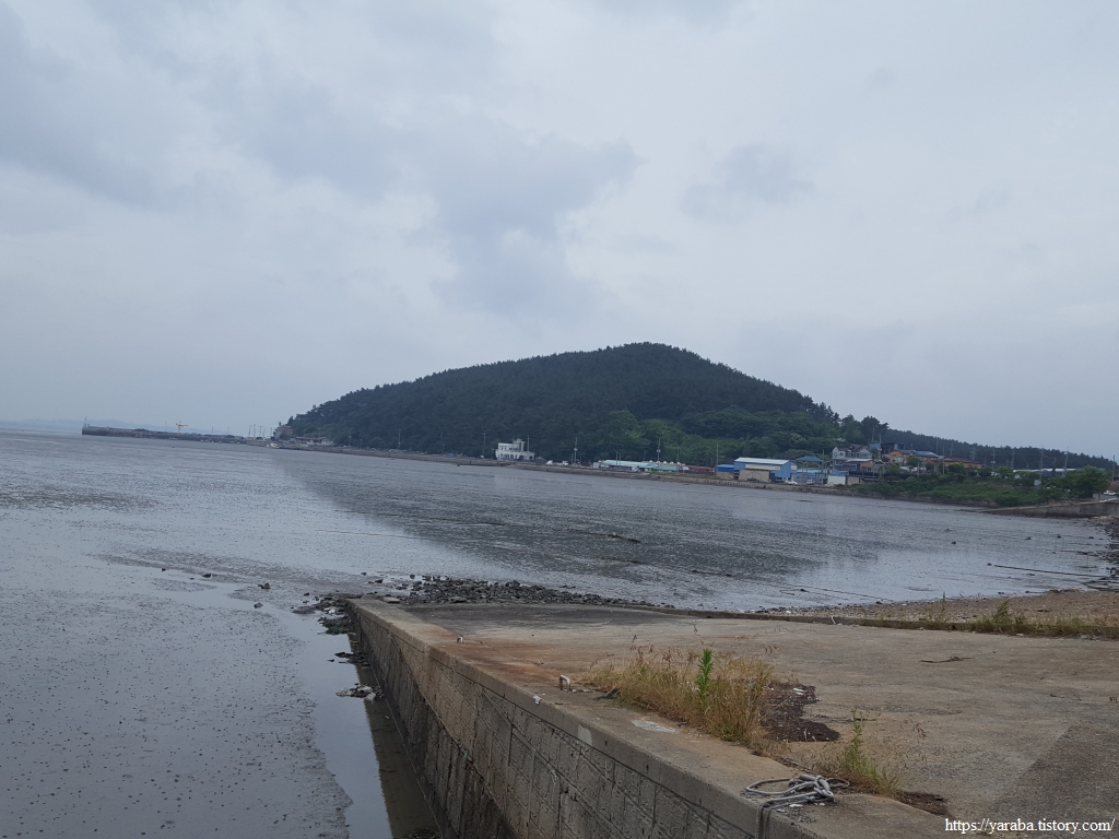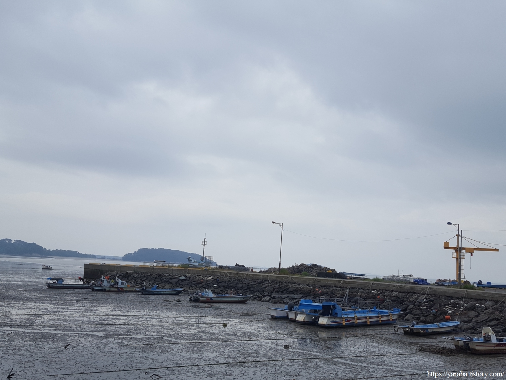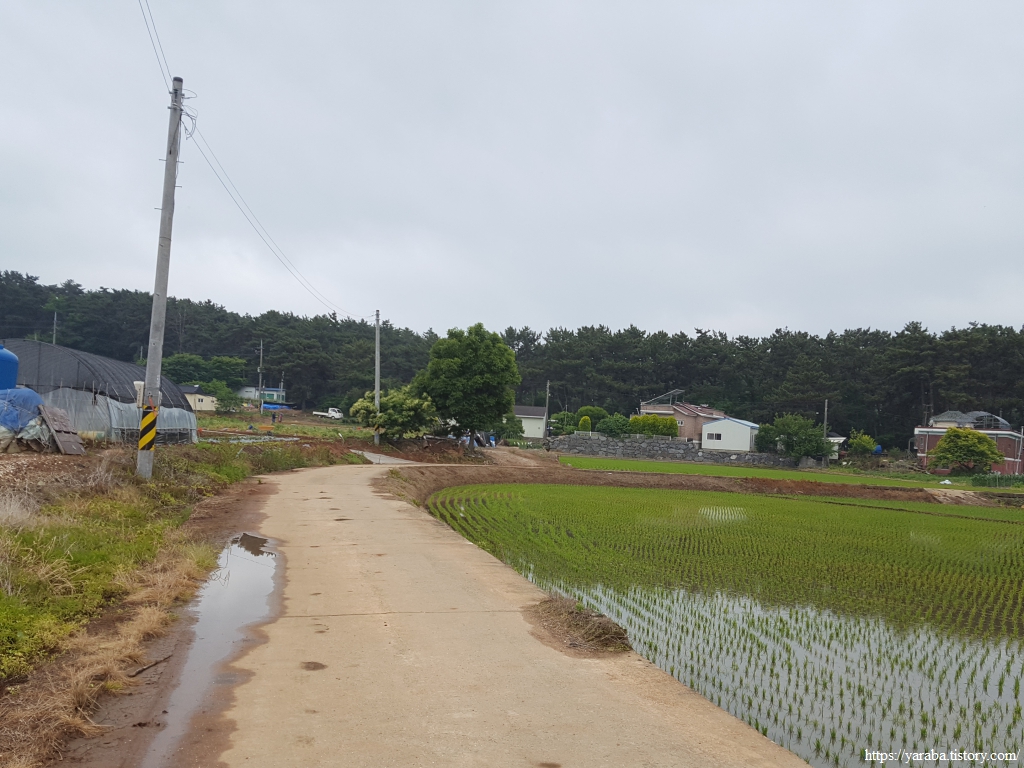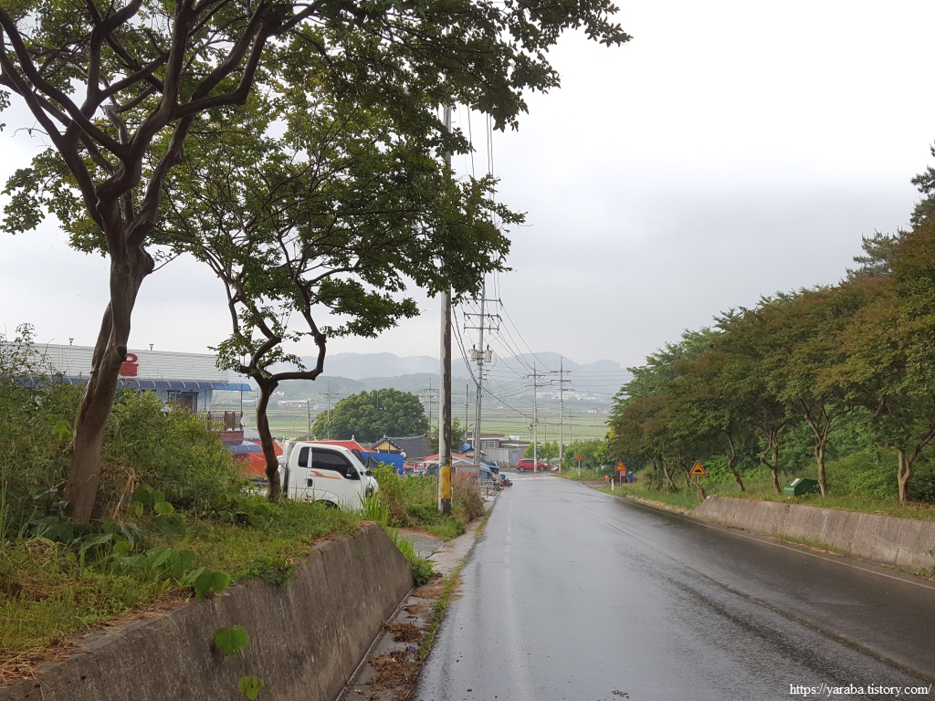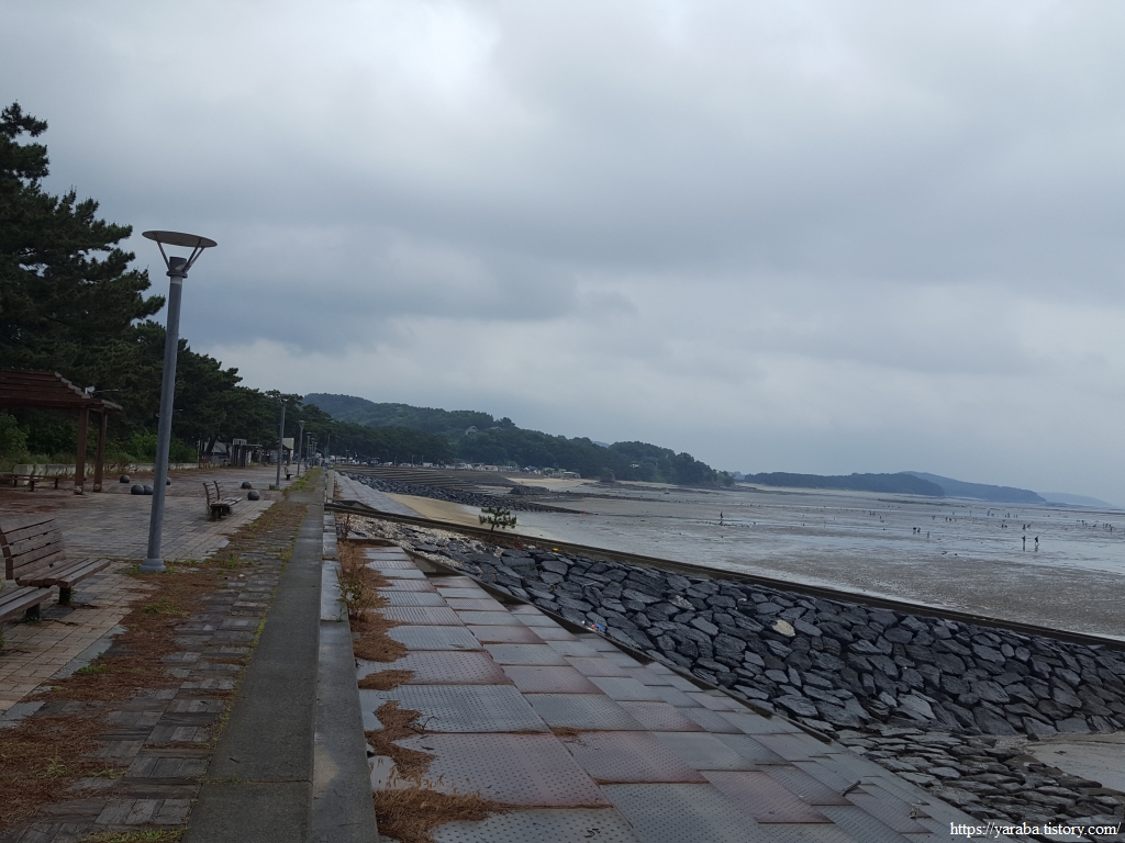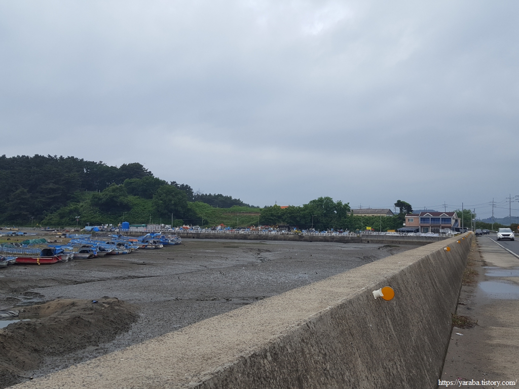 거친 비와 몰려오는 먹구름 아래서 갯벌체험로 도로를 따라 선도리로 향한다.