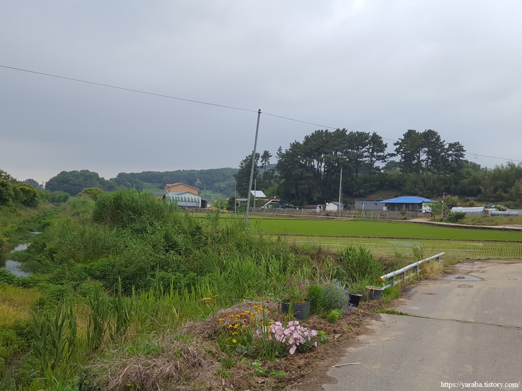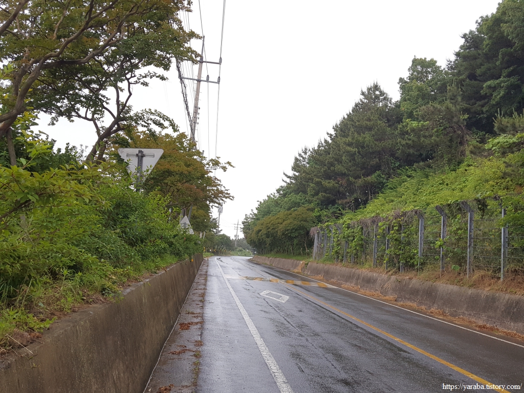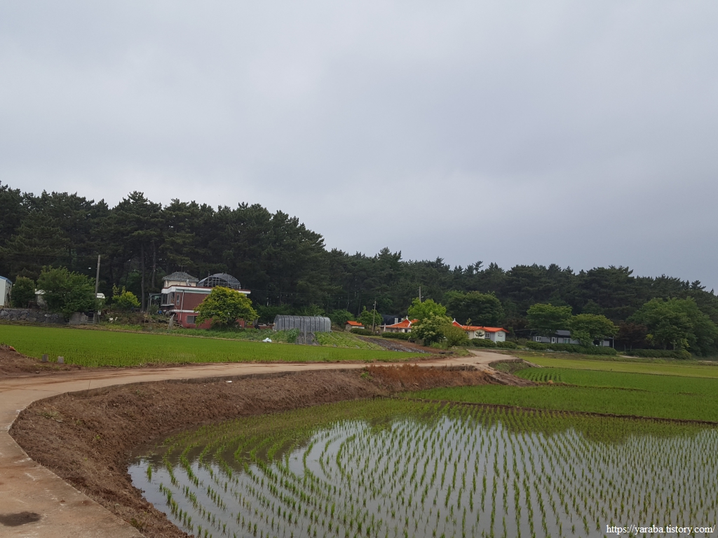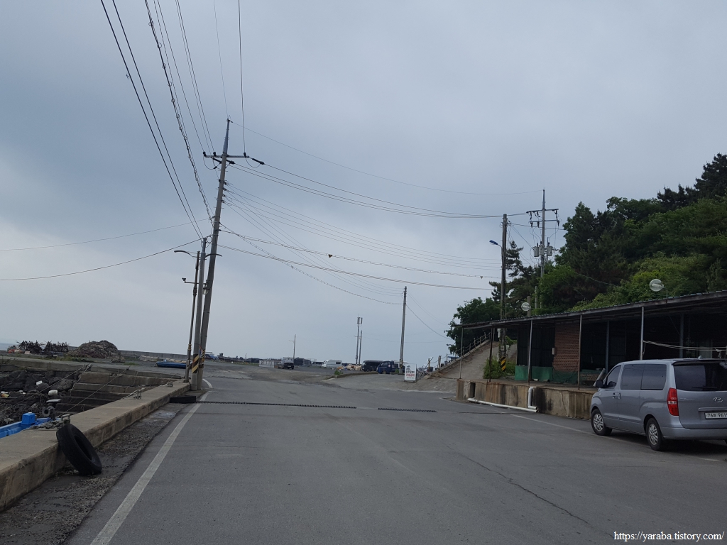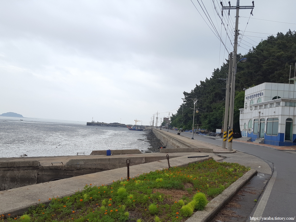 거친 비와 몰려오는 먹구름 아래서 갯벌체험로 도로를 따라 선도리로 향한다.