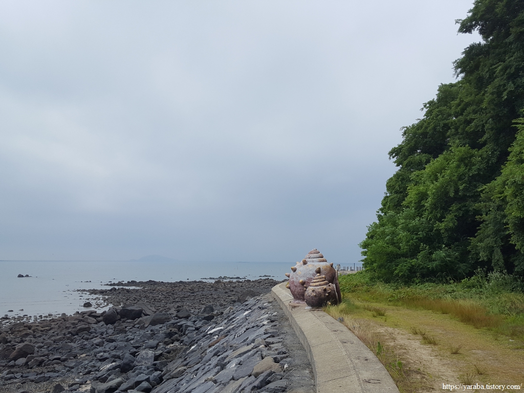 북쪽으로 다사 해변 끝자락의 서천옵바위를 보면서 이런저런 조형물과 함께 깔끔하게 정비된 해안 경관길을 걸어간다.