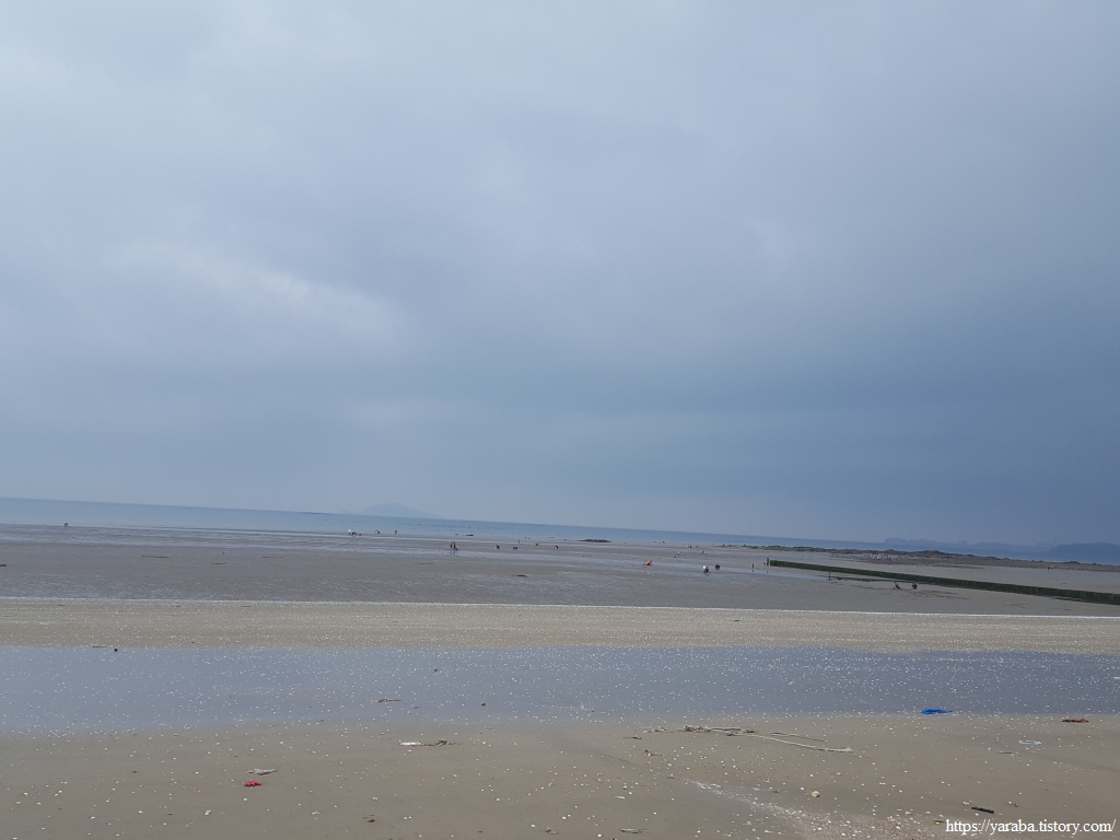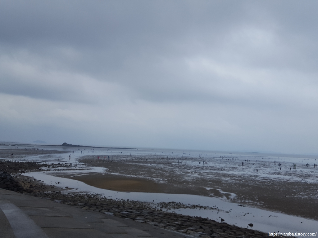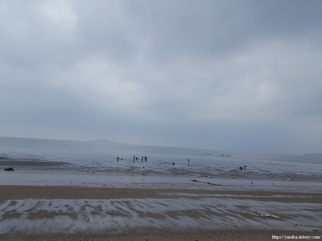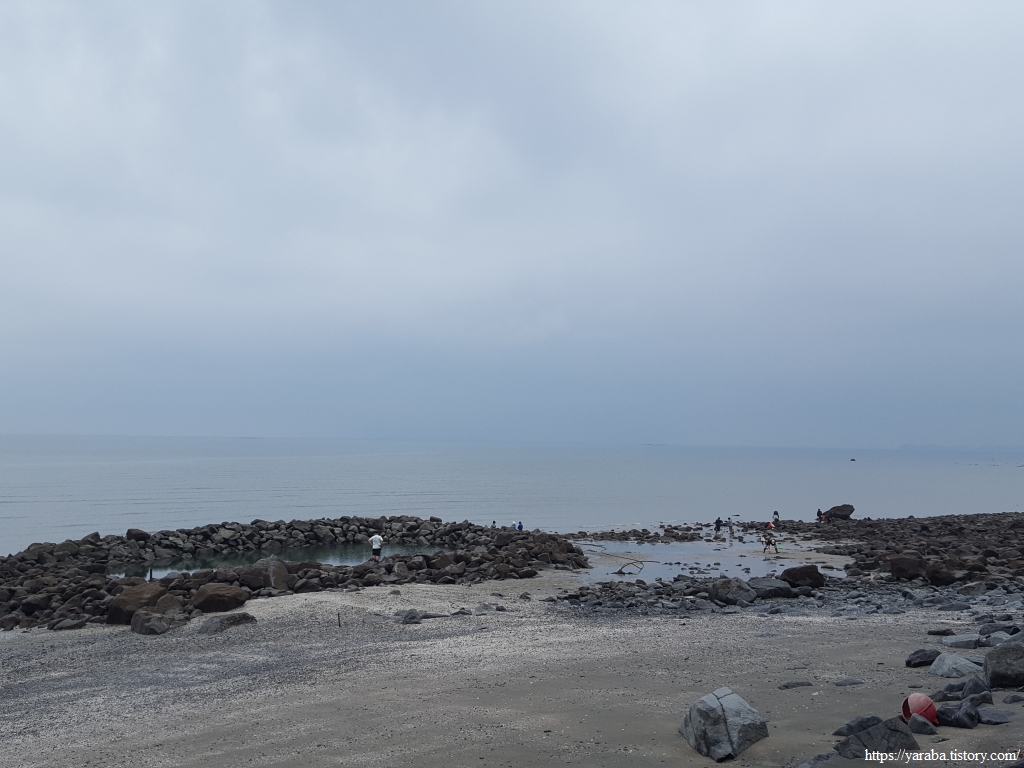 이곳 역시 사람들이 갯벌 체험하러 오는 장소 인지, 이른 아침부터 사람들이 하나둘 계속 해안선으로 향한다. 아이 손을 잡고 물장화에 모자, 양동이까지 완전 무장을 하고 바다로 향한다.