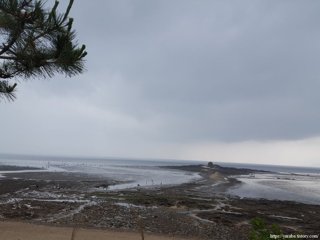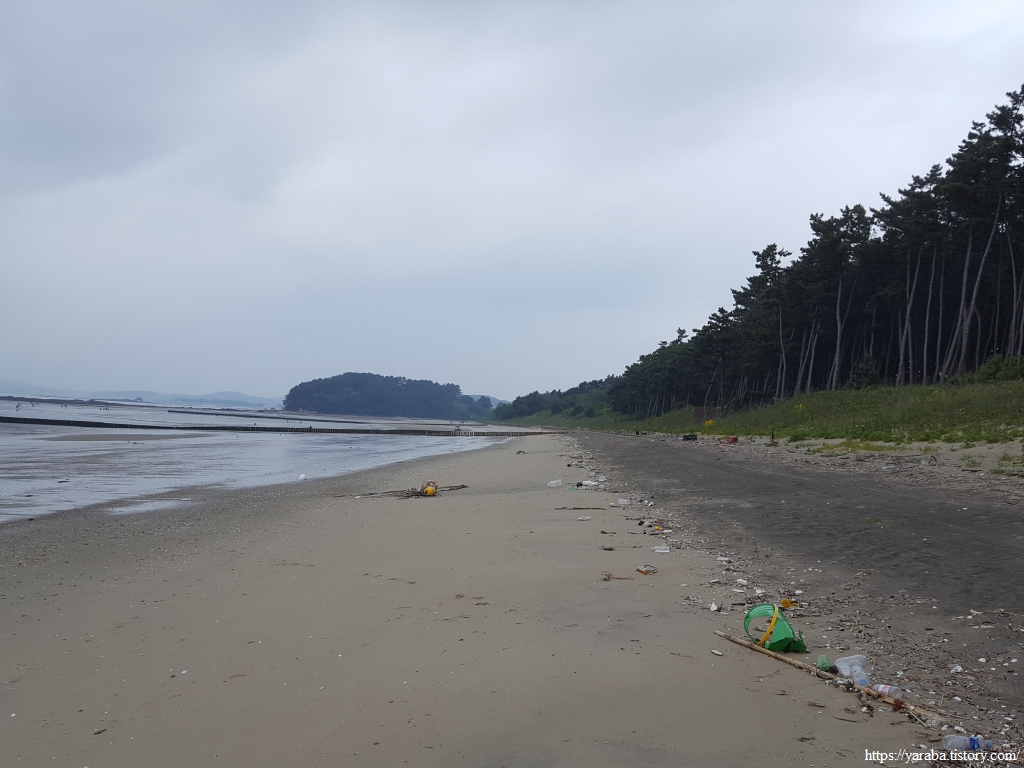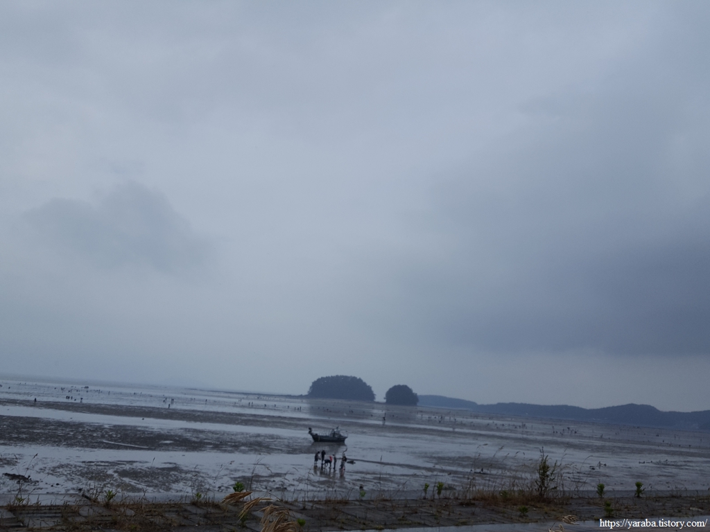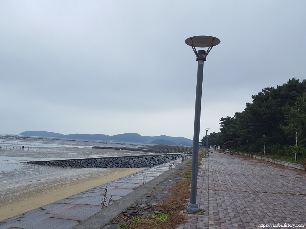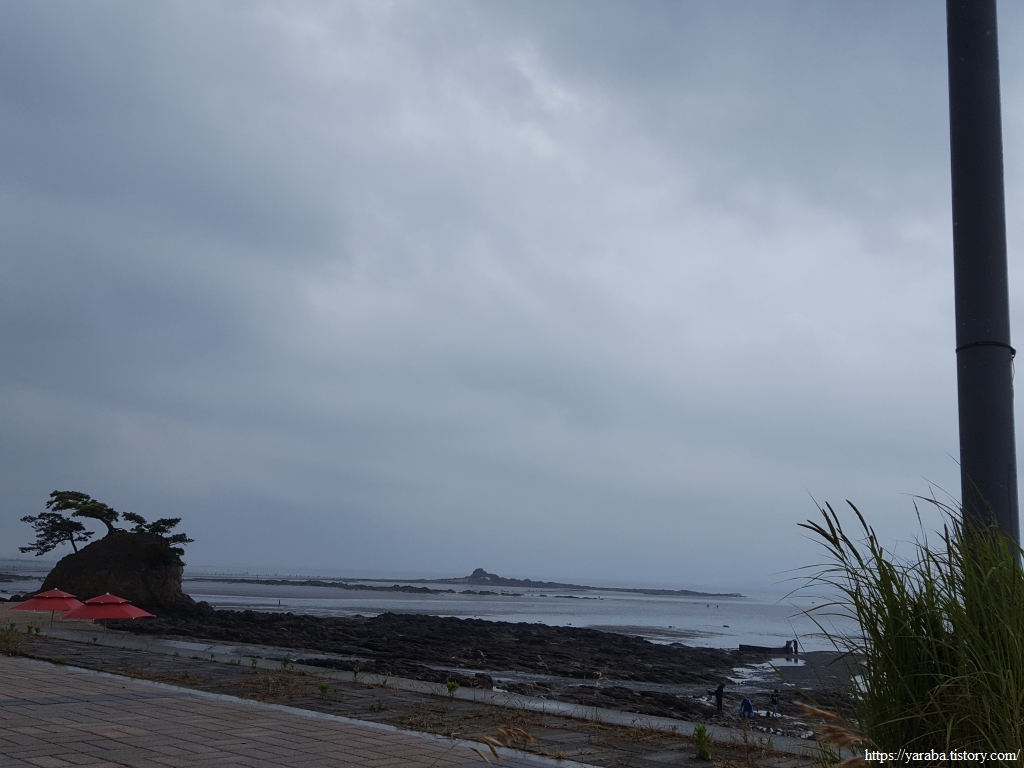 이곳 역시 사람들이 갯벌 체험하러 오는 장소 인지, 이른 아침부터 사람들이 하나둘 계속 해안선으로 향한다. 아이 손을 잡고 물장화에 모자, 양동이까지 완전 무장을 하고 바다로 향한다.