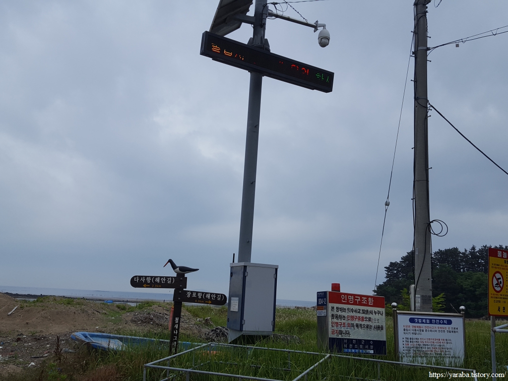 다사리 해변 입구에는 작은 주차장도 마련되어 있었는데, 다른 어촌에서 쉽게 볼 수 있는 채취 금지 표식이 아니라 갯벌 체험 안전수칙을 안내하고 있었다. 와우! 언젠가 조개 캐러 올 장소로 찜해놓는다.