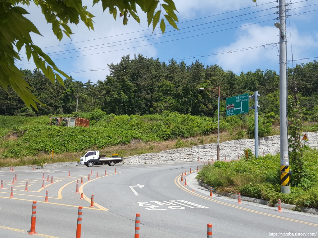 놀녹산 언덕길을 내려온 길은 홍원항으로 진입한다.