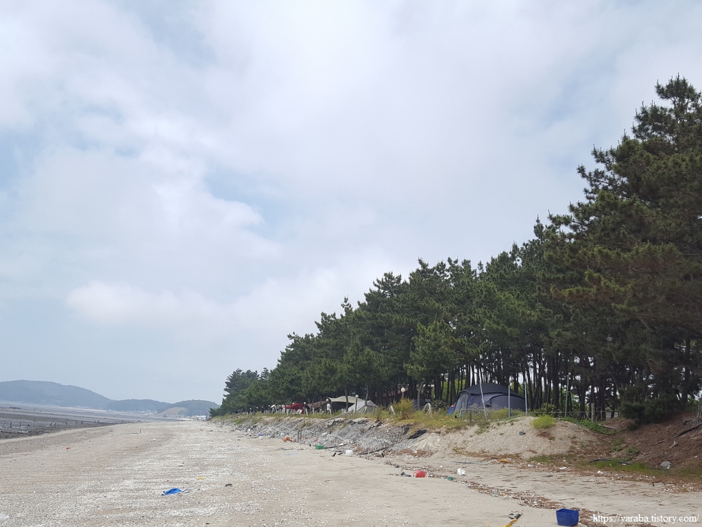 이렇게 좋은 모래밭과 솔숲이 있는데 휴양시설이 들어서지 않은 게 신기할 정도이다. 다행인지도 모르겠다.